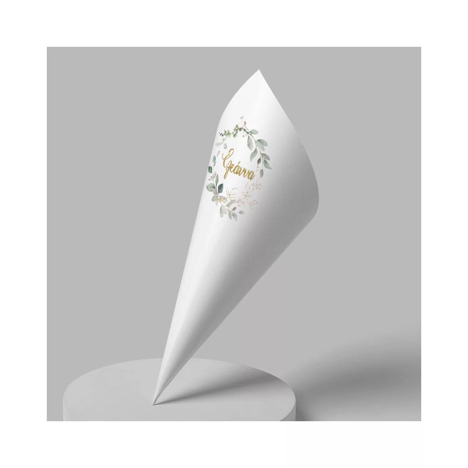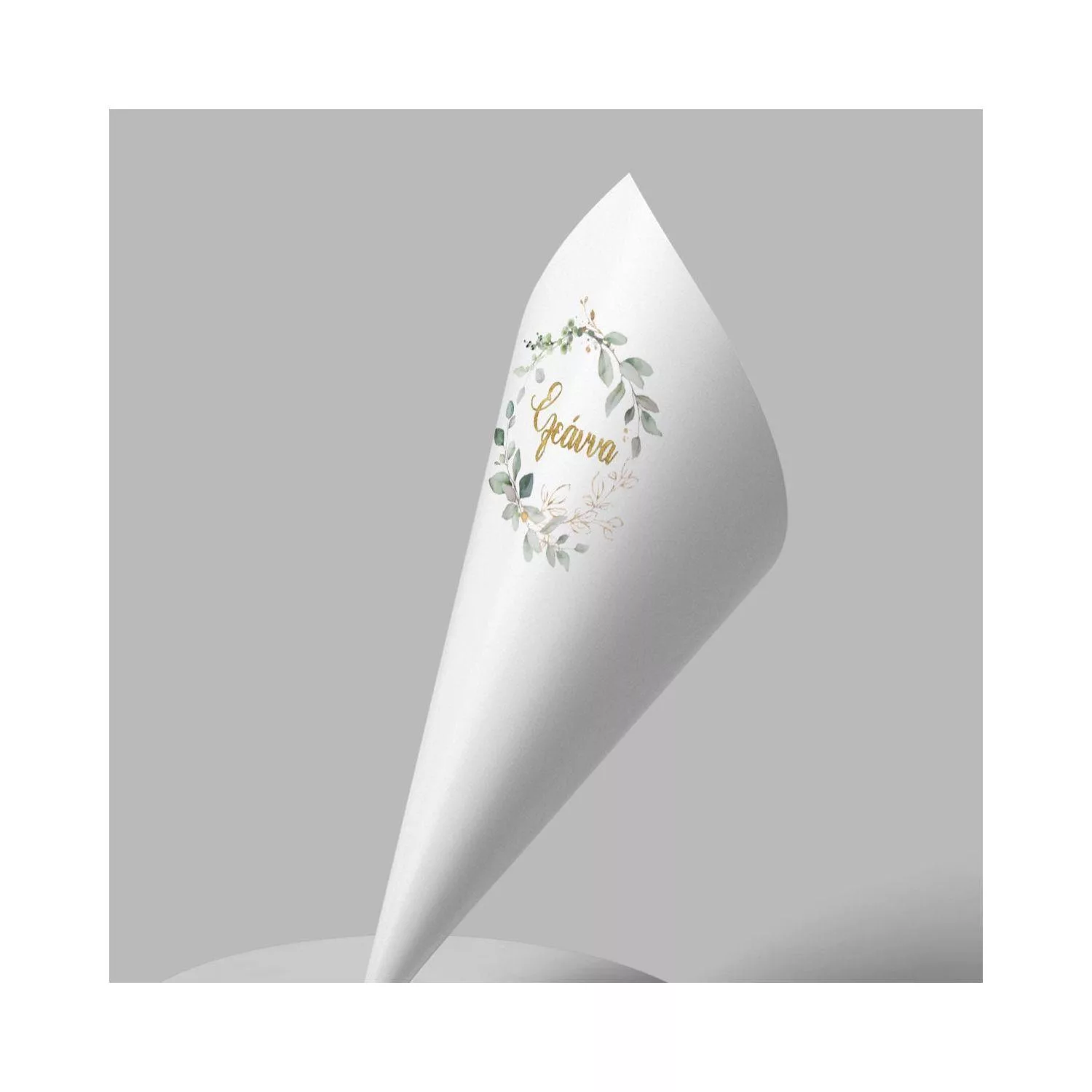 Paper candy cones Vintage painted leaves and flowers, gold name