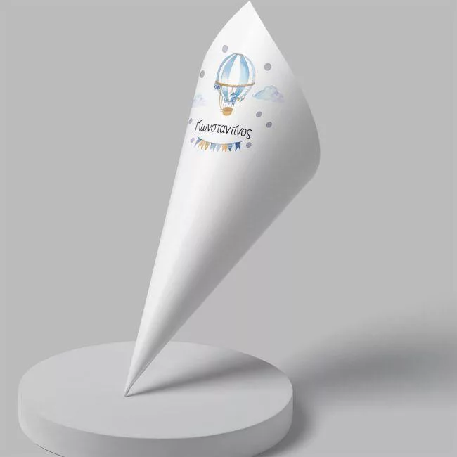 Paper candy cones Watercolor balloon with name, blue