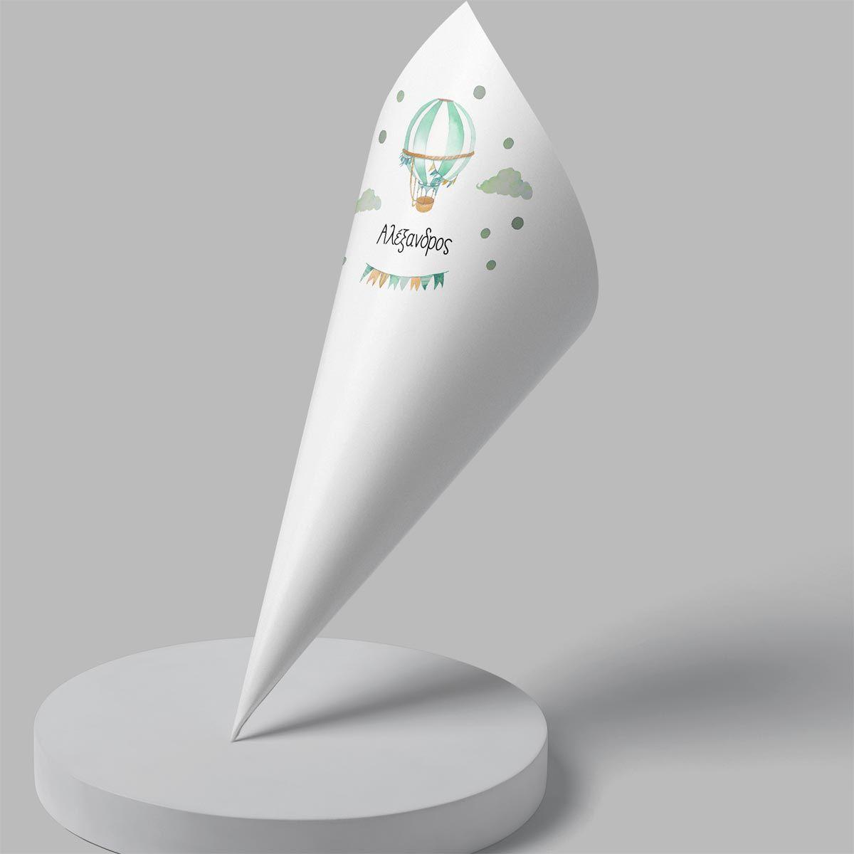 Paper candy cones Watercolor balloon with name, green