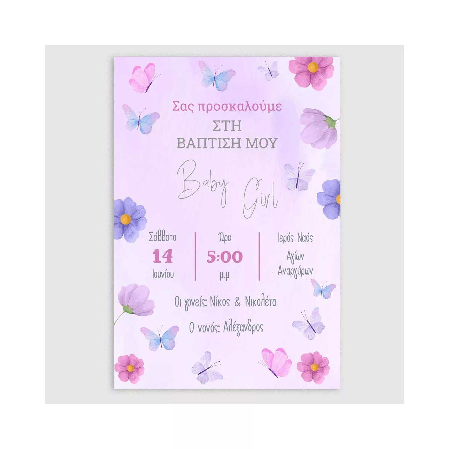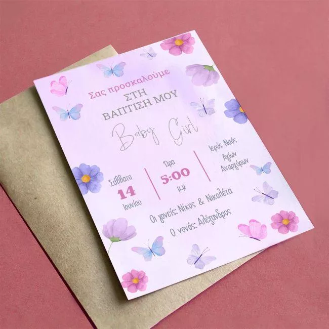 Party invitation Butterflies and flowers purple