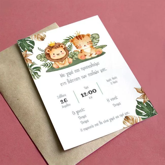 Vaptism invitaion twins Lion and tiger