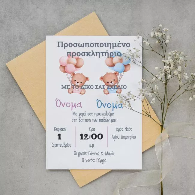 Vaptism invitaion twins personalized