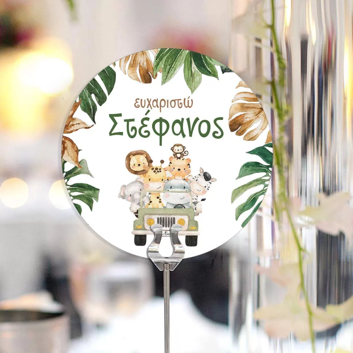 Labels thank you, Animals in a jeep
