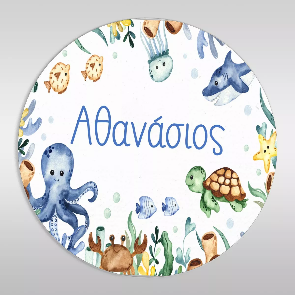Personalized sea world favor tags / Perfect for decorating baptism favors and gifts / Vibrant colors on premium paper / Add your custom name and date