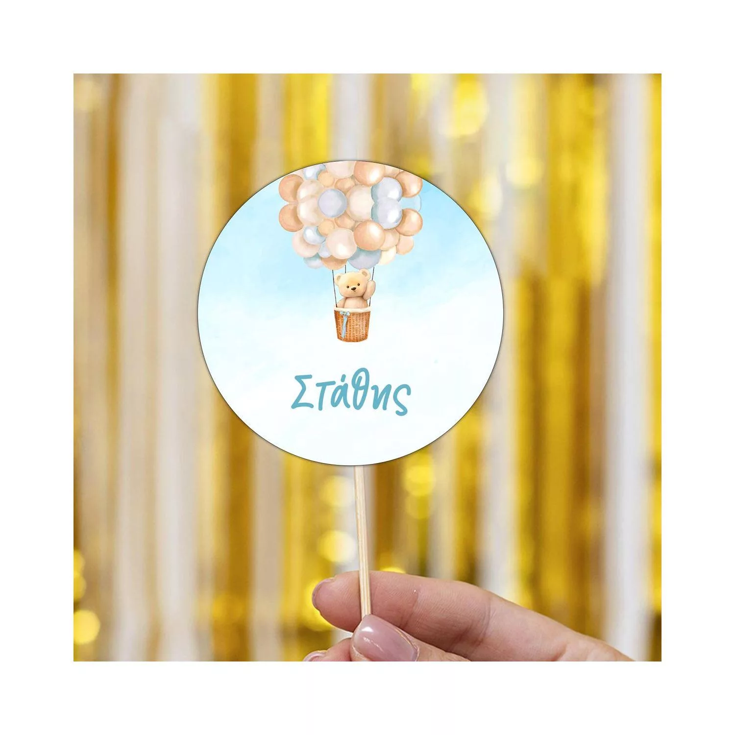 Labels thank you, Teddy bear with balloons 2, boy