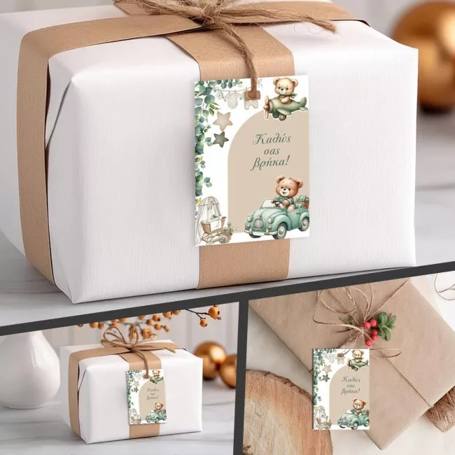 Paper tags, birth & baby shower Green art 2