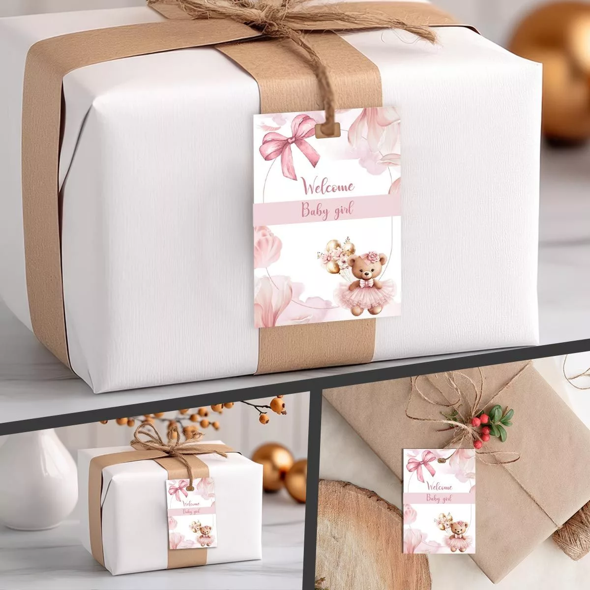 Paper tags, welcome baby girl art 2