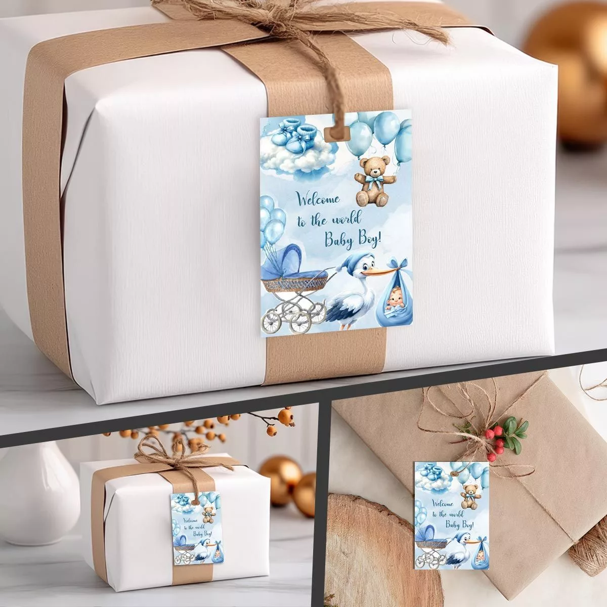 Paper tags, welcome to thw world baby boy art 1