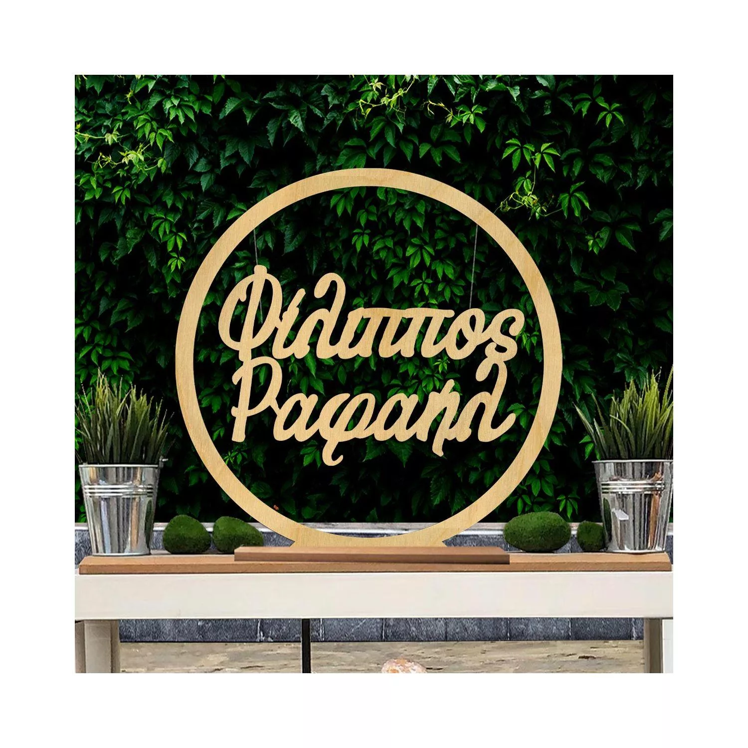 Personalized wooden names for the baptism arch, adding a unique, warm touch. Perfect for creating a memorable atmosphere on this special day.