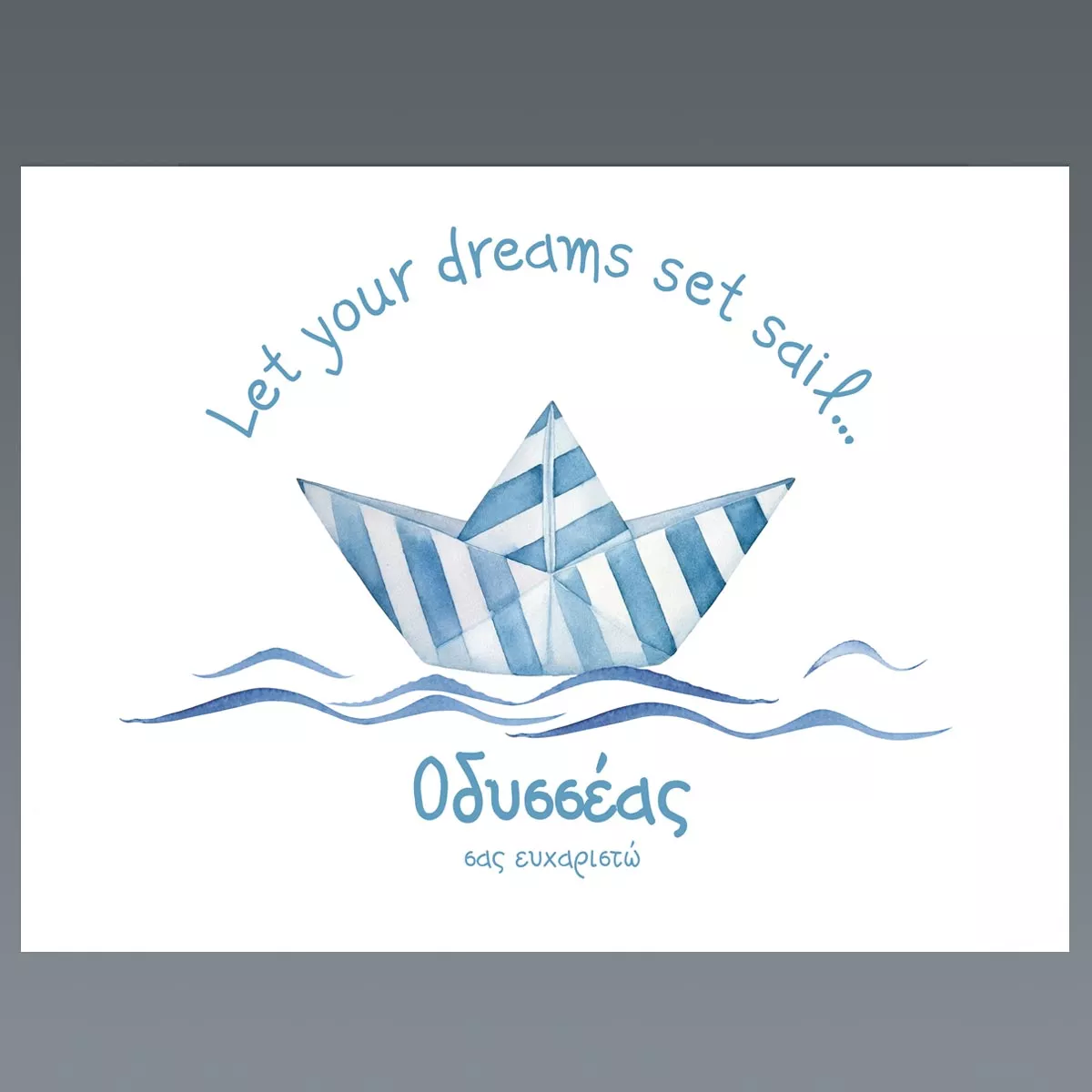 - Nautical Theme: The delicate watercolor design with the striped paper boat evokes a sense of journey and adventure.