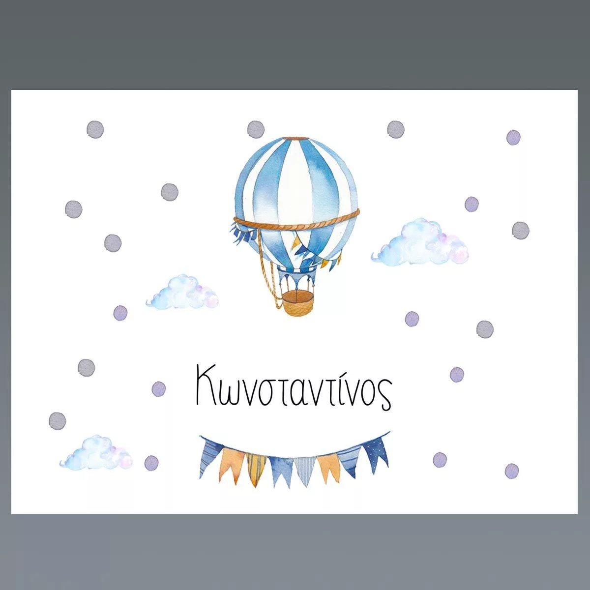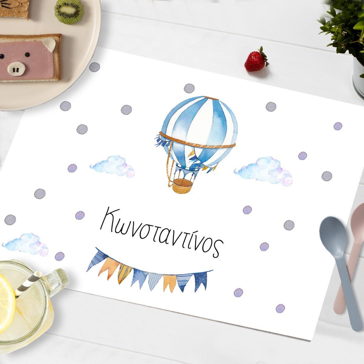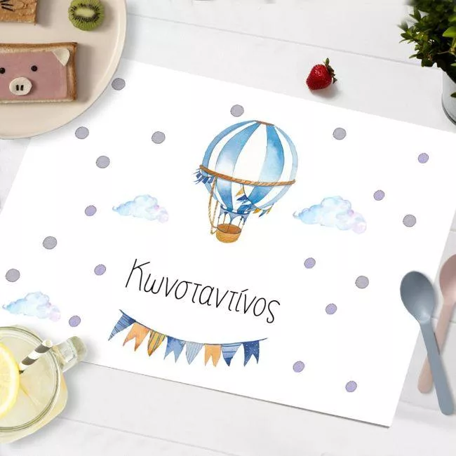 Placemat, Watercolor balloon with name, blue