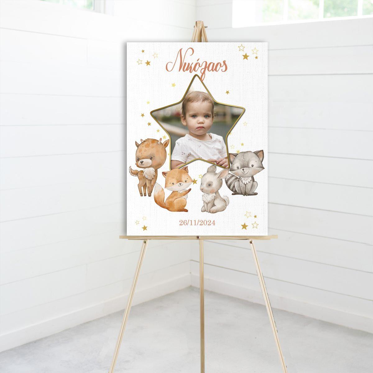 Canvas baptism baptism Welcome, Star with photo and woodland animals