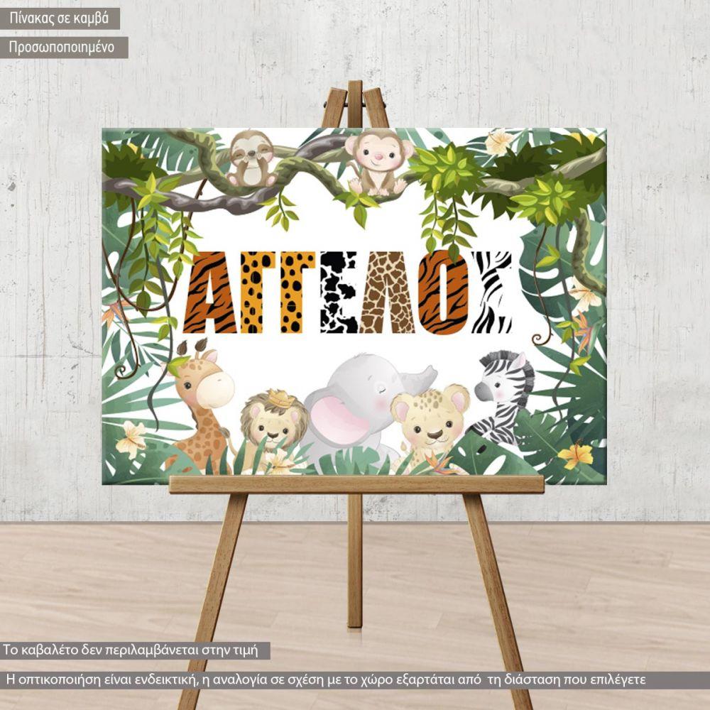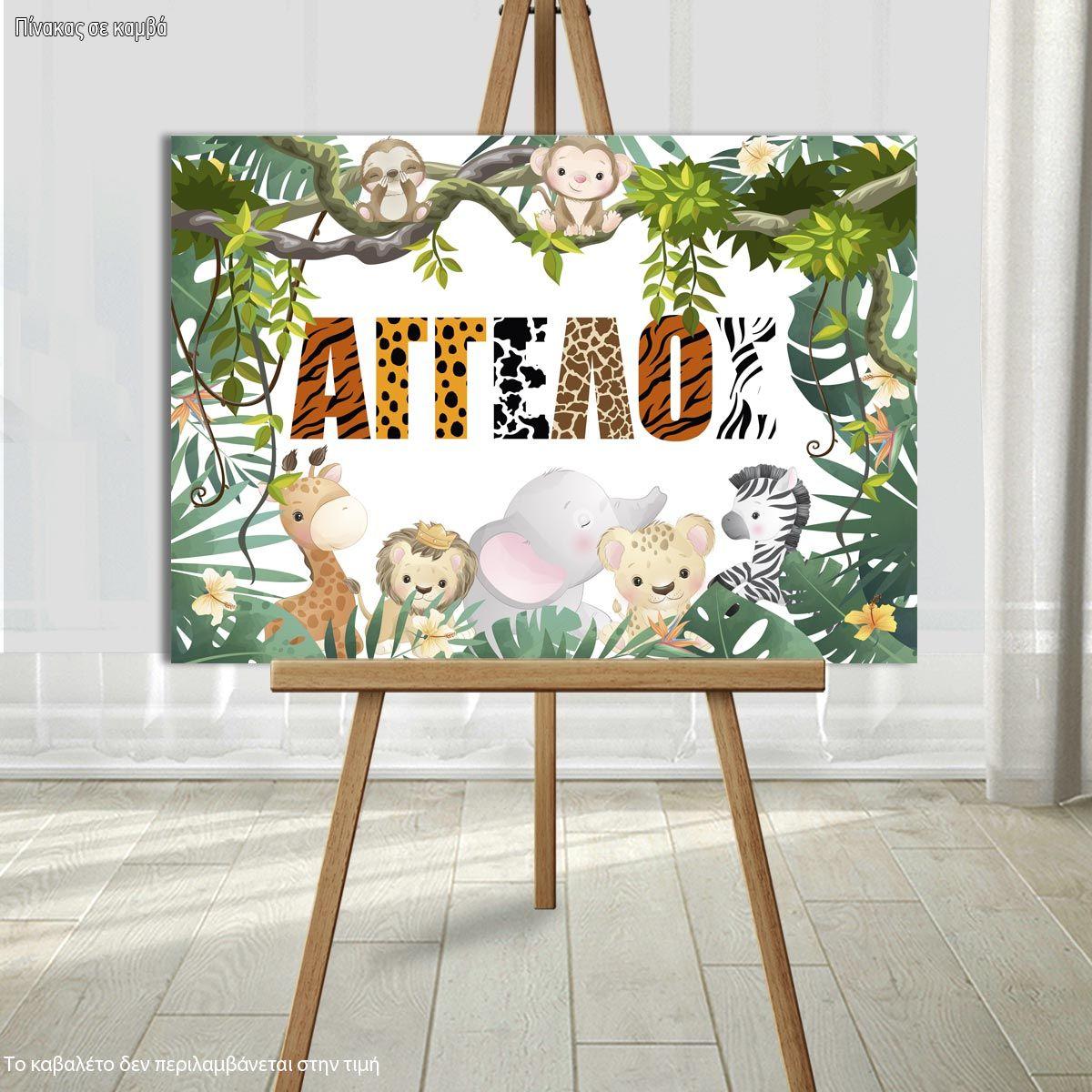 Canvas print Baptism decoration, Animal print personalized name