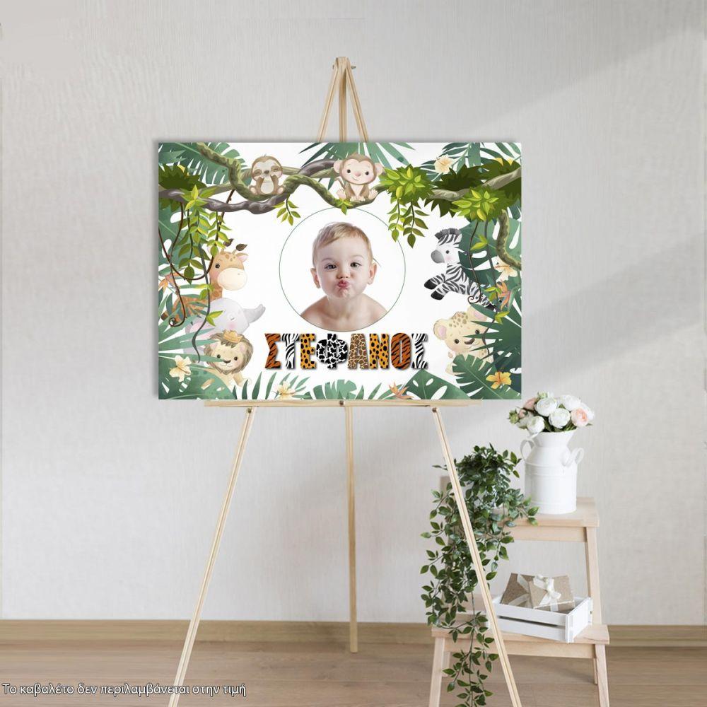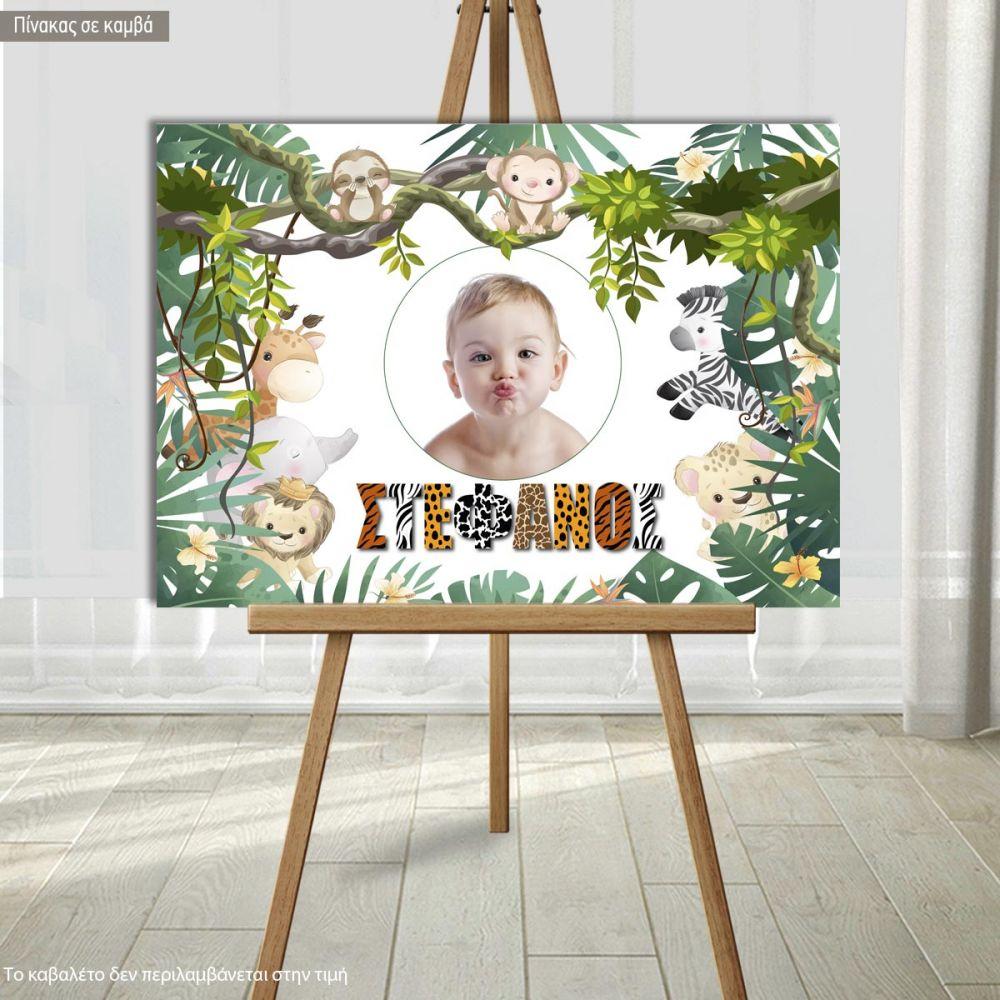 Canvas print Baptism decoration, Animal print personalized name and photo