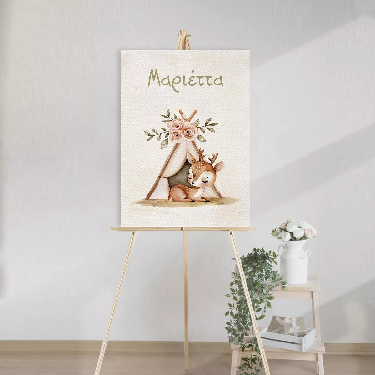 Canvas print Baptism decoration, Animal print personalized name