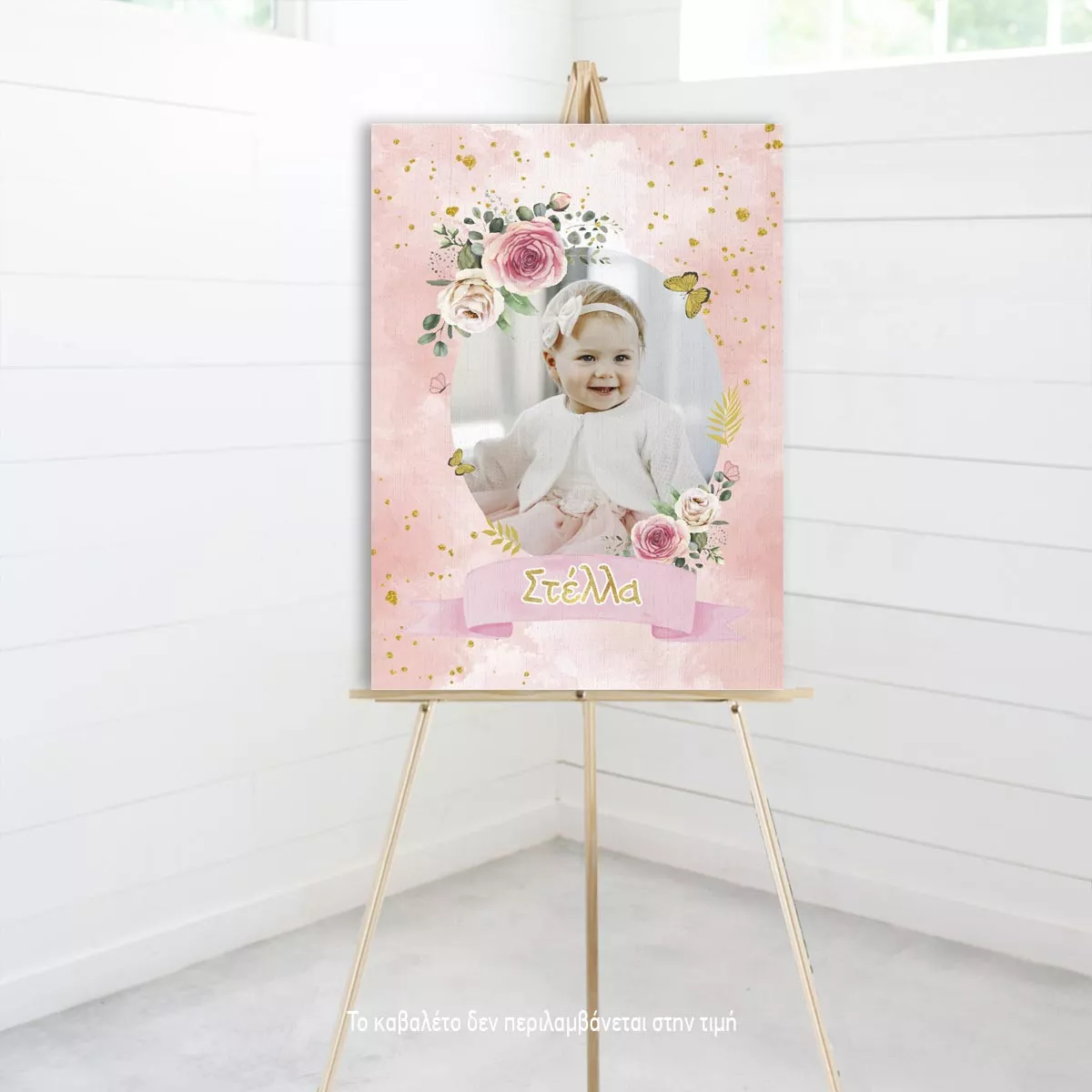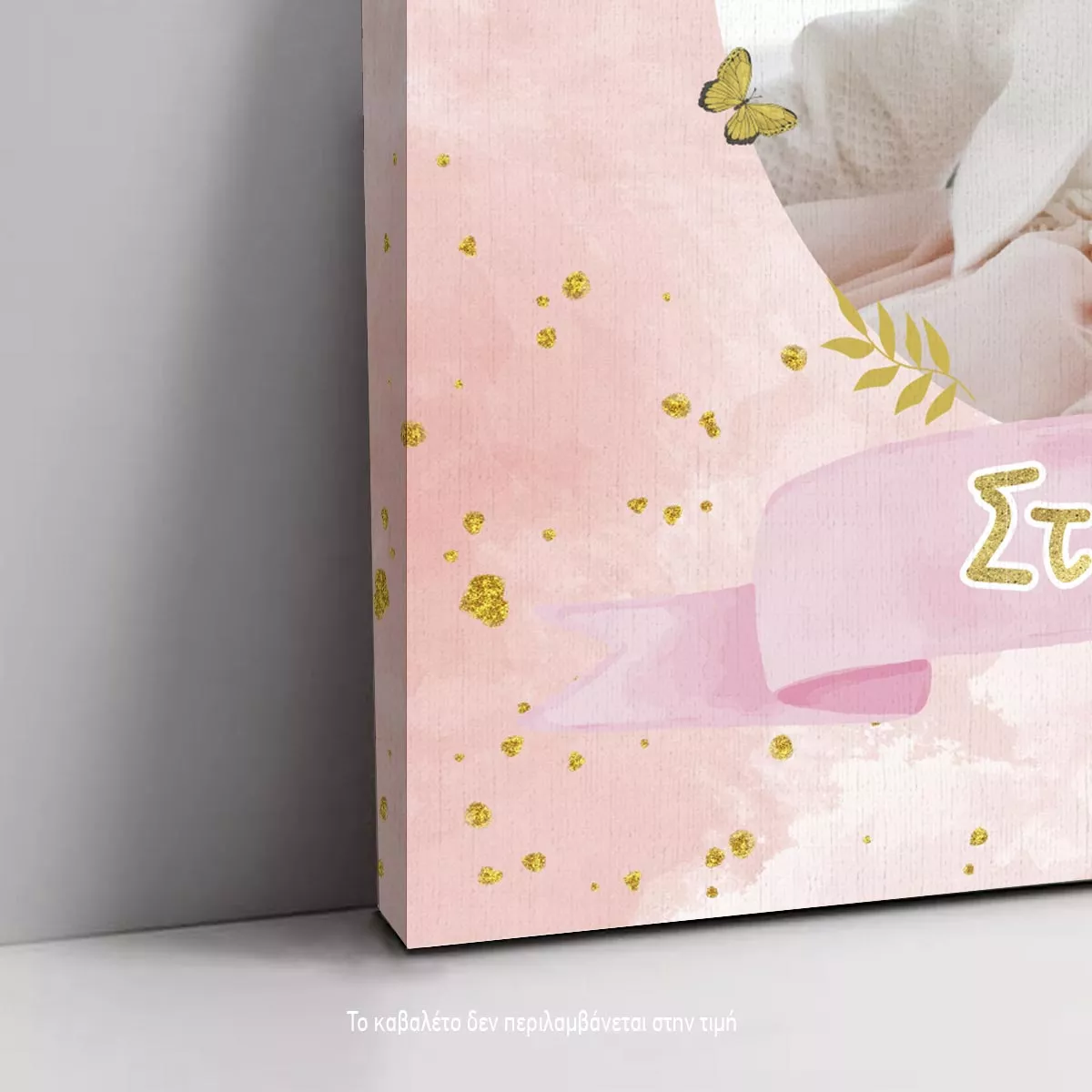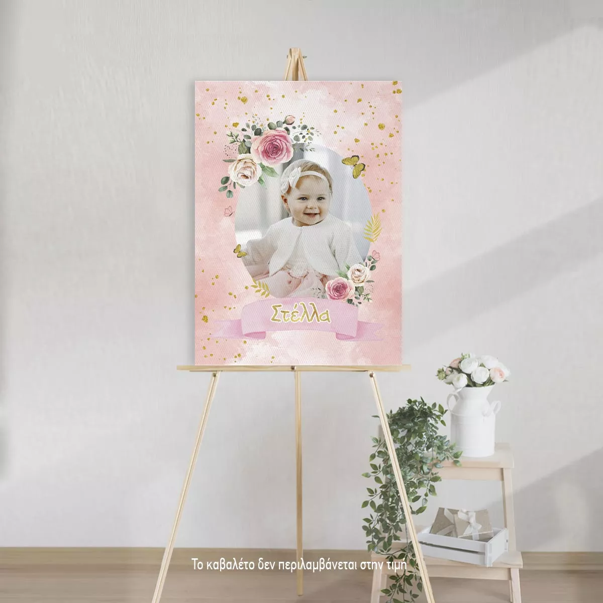 Canvas print baptism, Flowers gold details and photo
