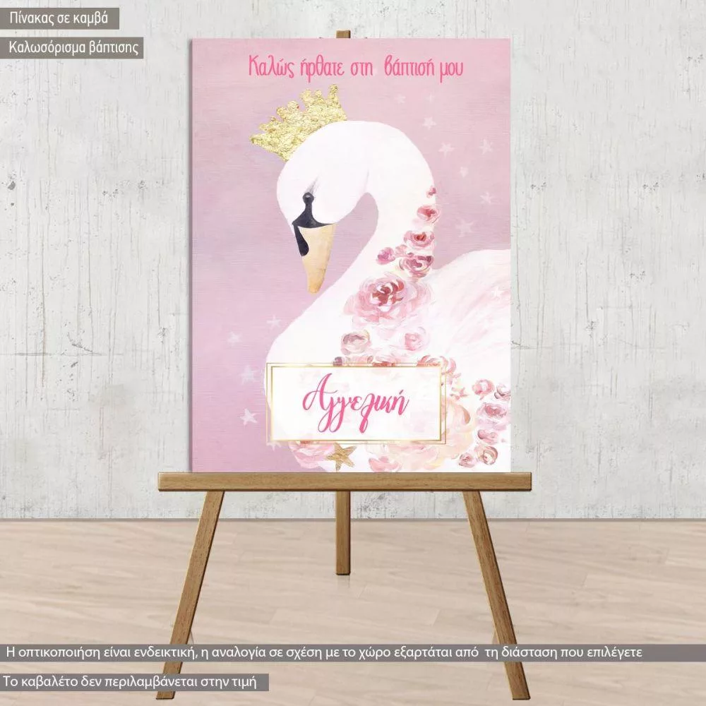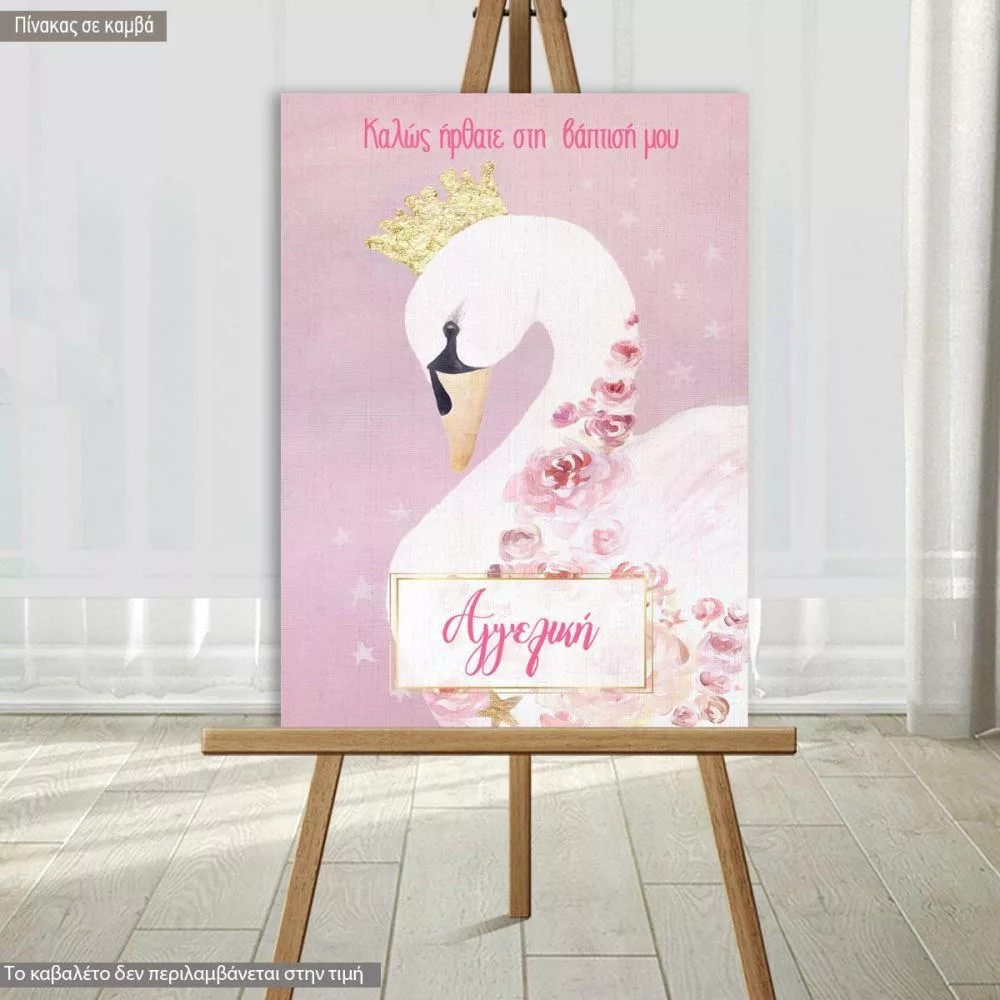 Canvas print welcome to my baptism , swan watercolor and flowers