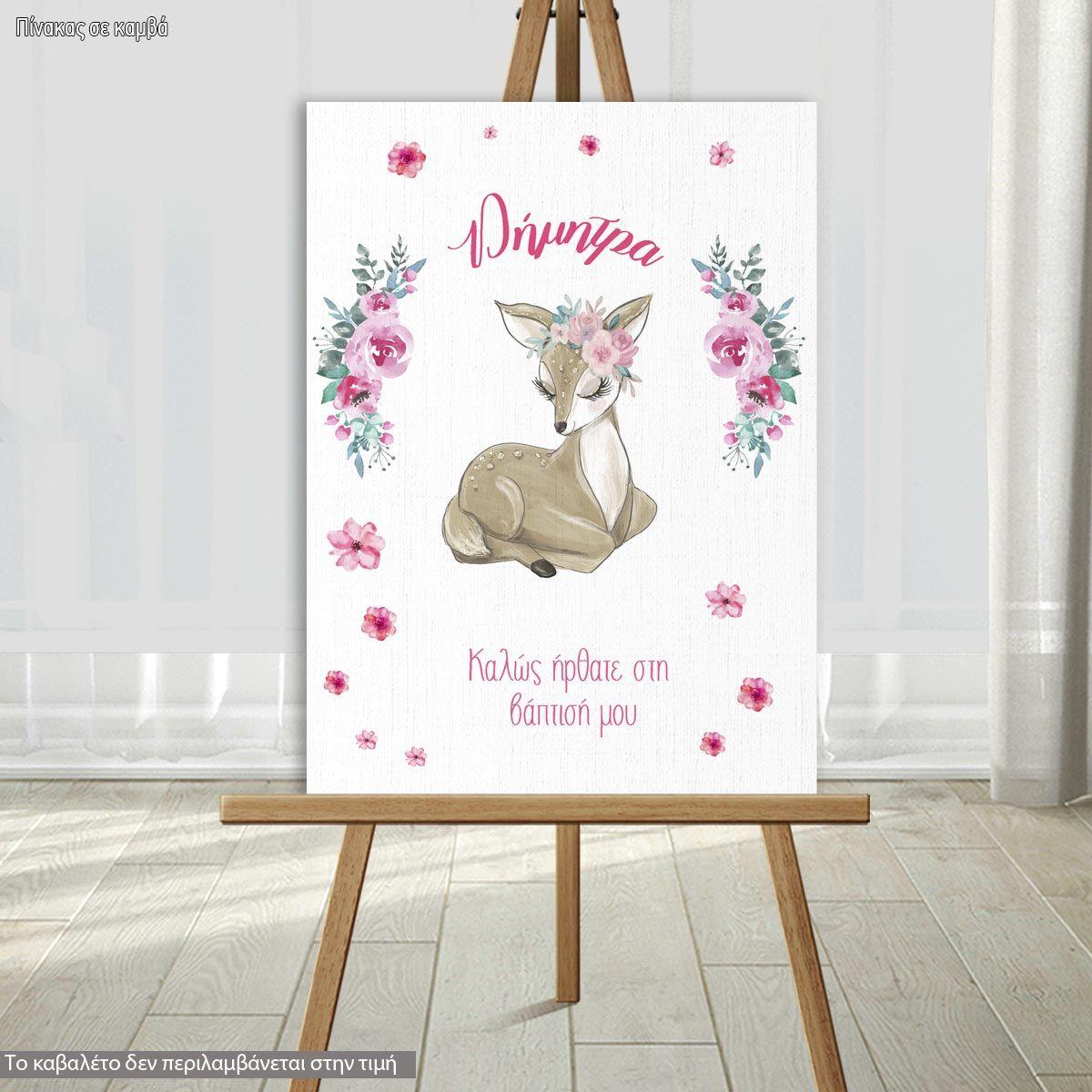 Canvas print, Sitting Deer with watercolor flowers