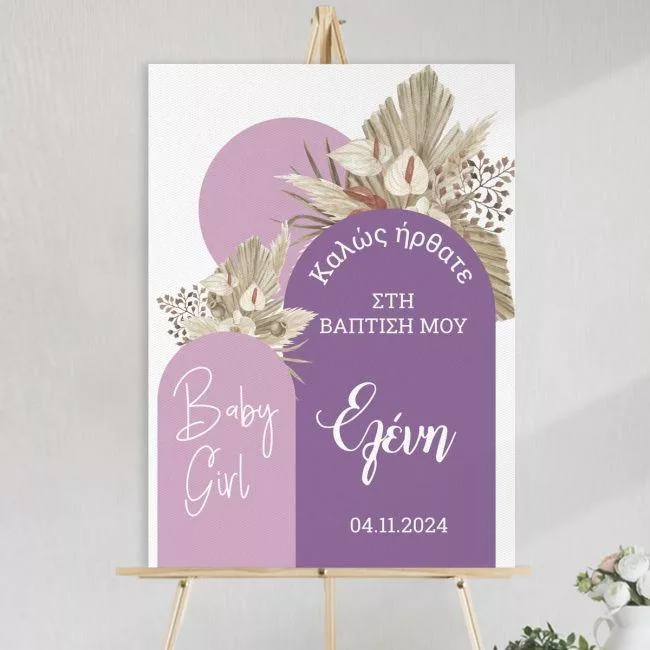 Canvas print welcome baptism, Baby girl boho 2