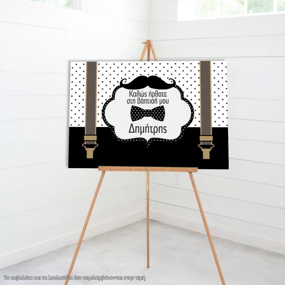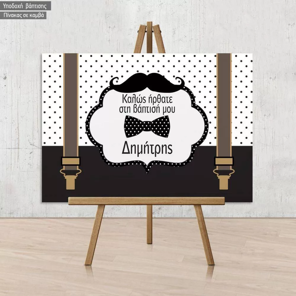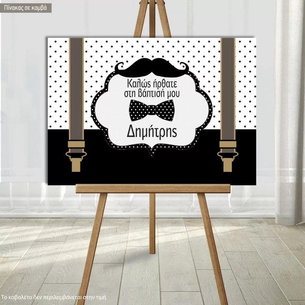 Canvas print Welcome to Baptism , Moustache Papillon suspenders