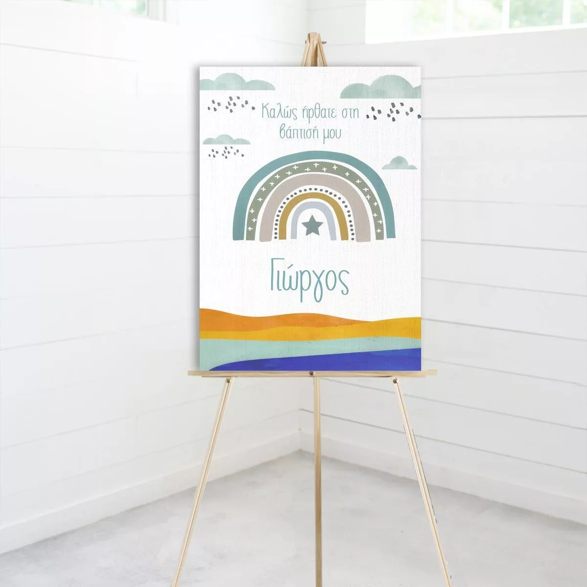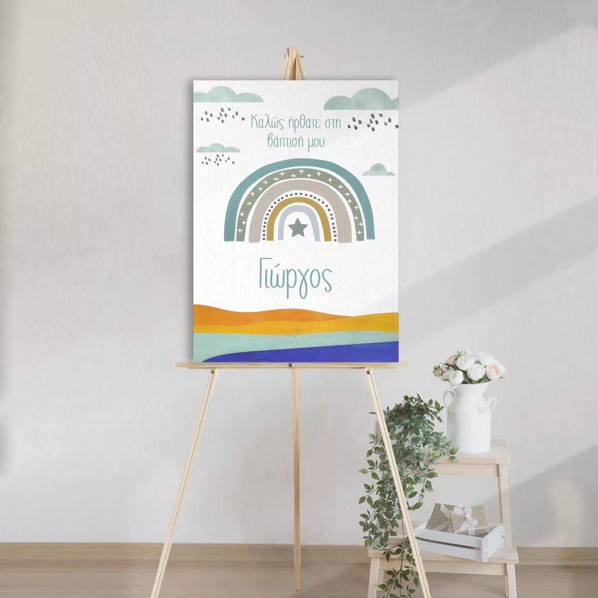 Canvas print welcome to my baptism , Rainbow nordic blue