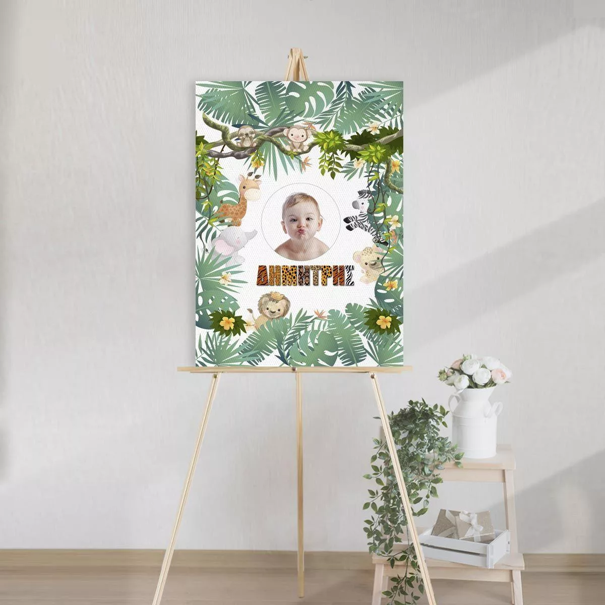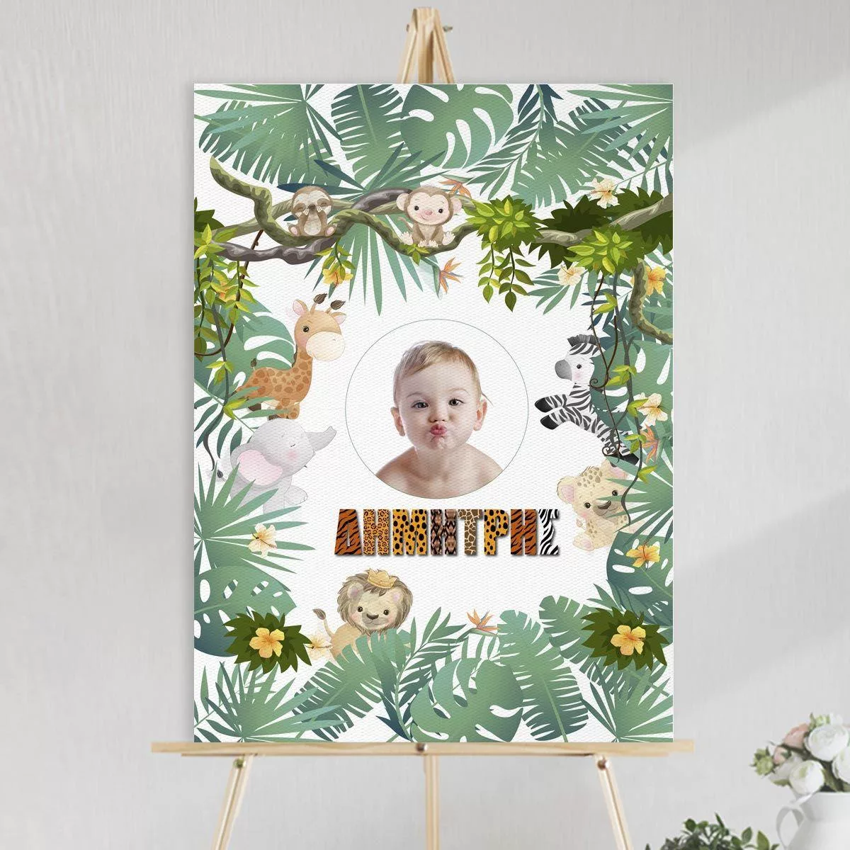 Canvas print welcome to my baptism, Animal print 2 with photo