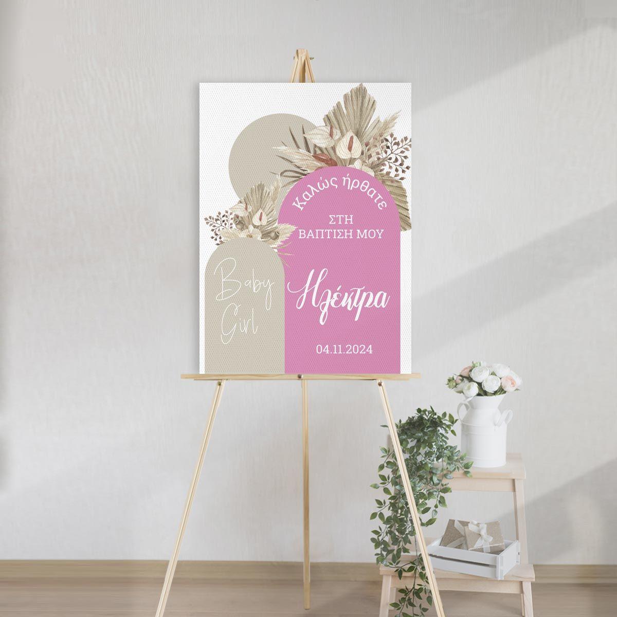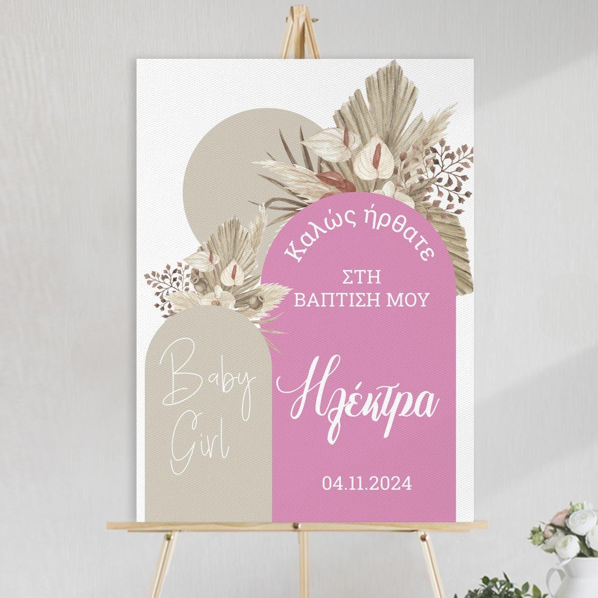 Canvas print welcome to my baptism, Baby girl boho pink beige