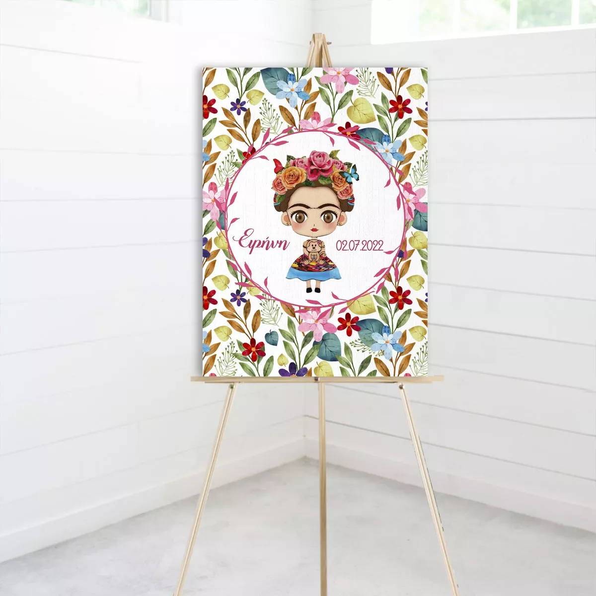Canvas print welcome to my baptism , Cute floral Fridha II
