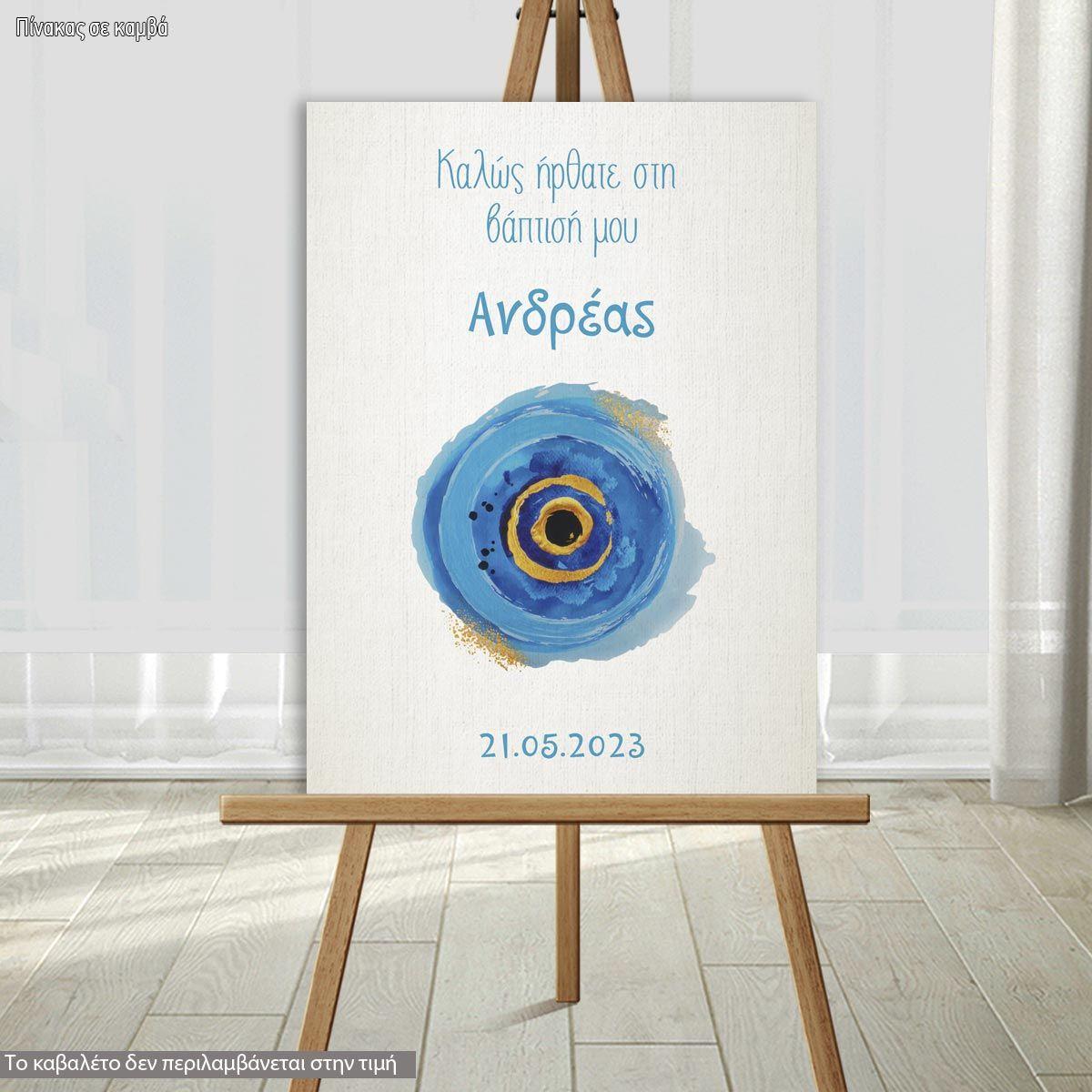 Canvas print welcome to my baptism, Evil eye watercolor