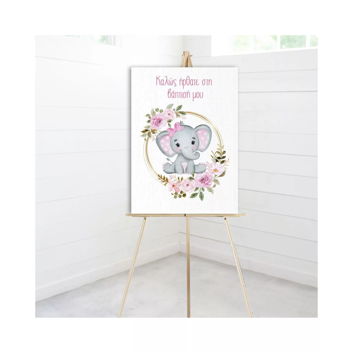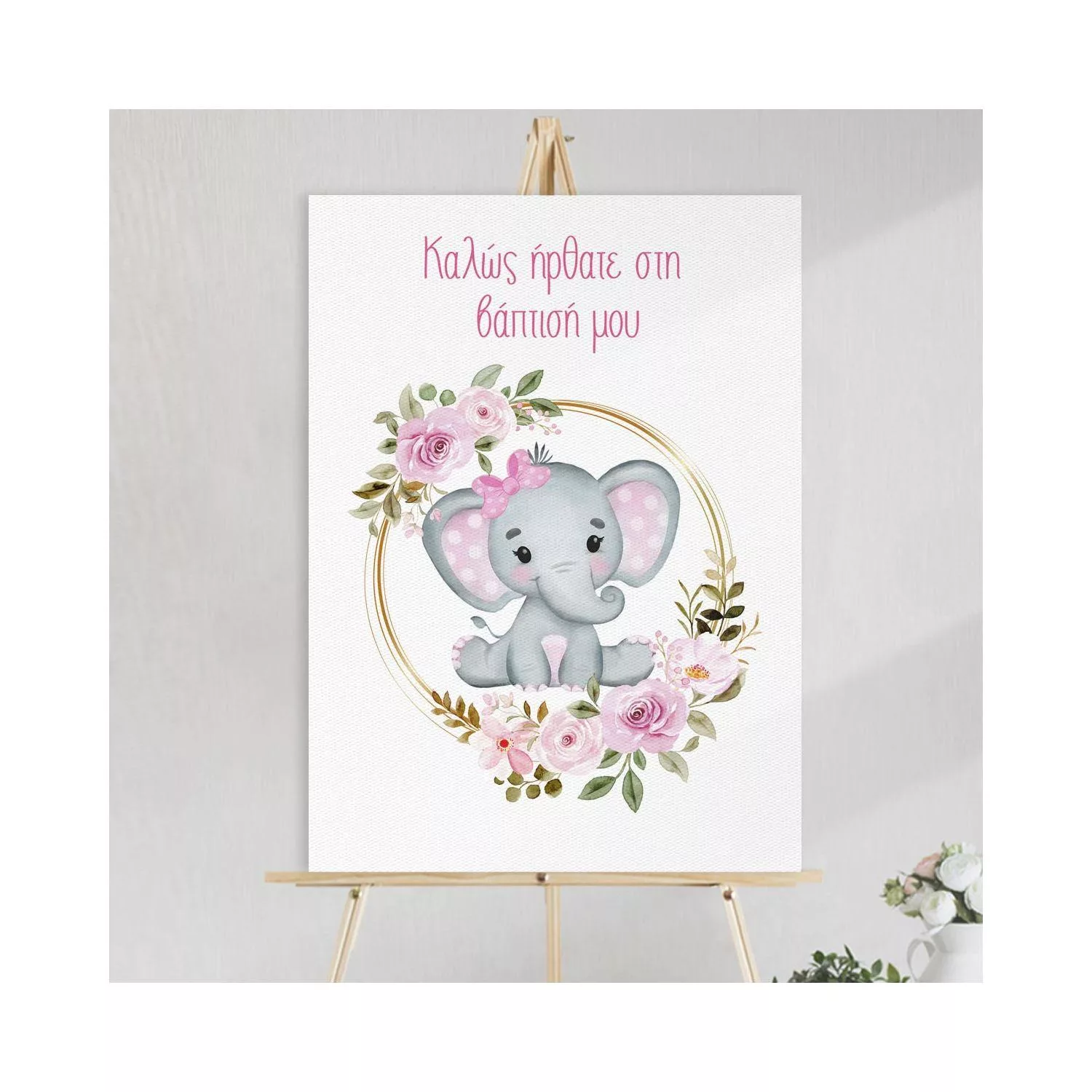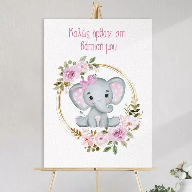 Canvas print welcome to my baptism, Girl baby Elephant