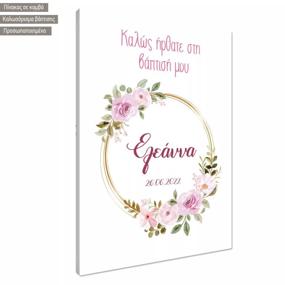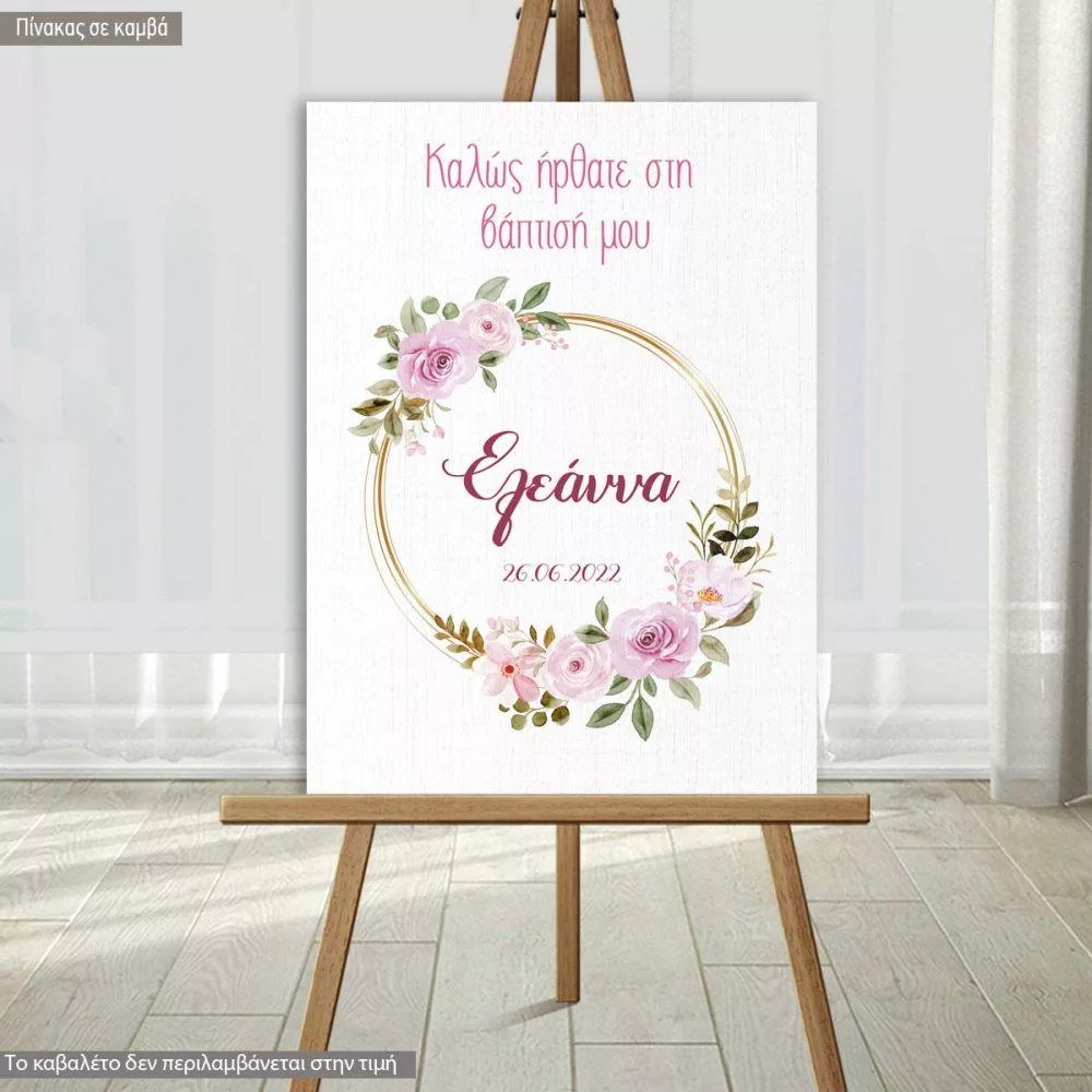 Canvas print welcome to my baptism, Golden circles and flowers