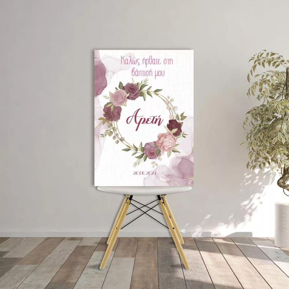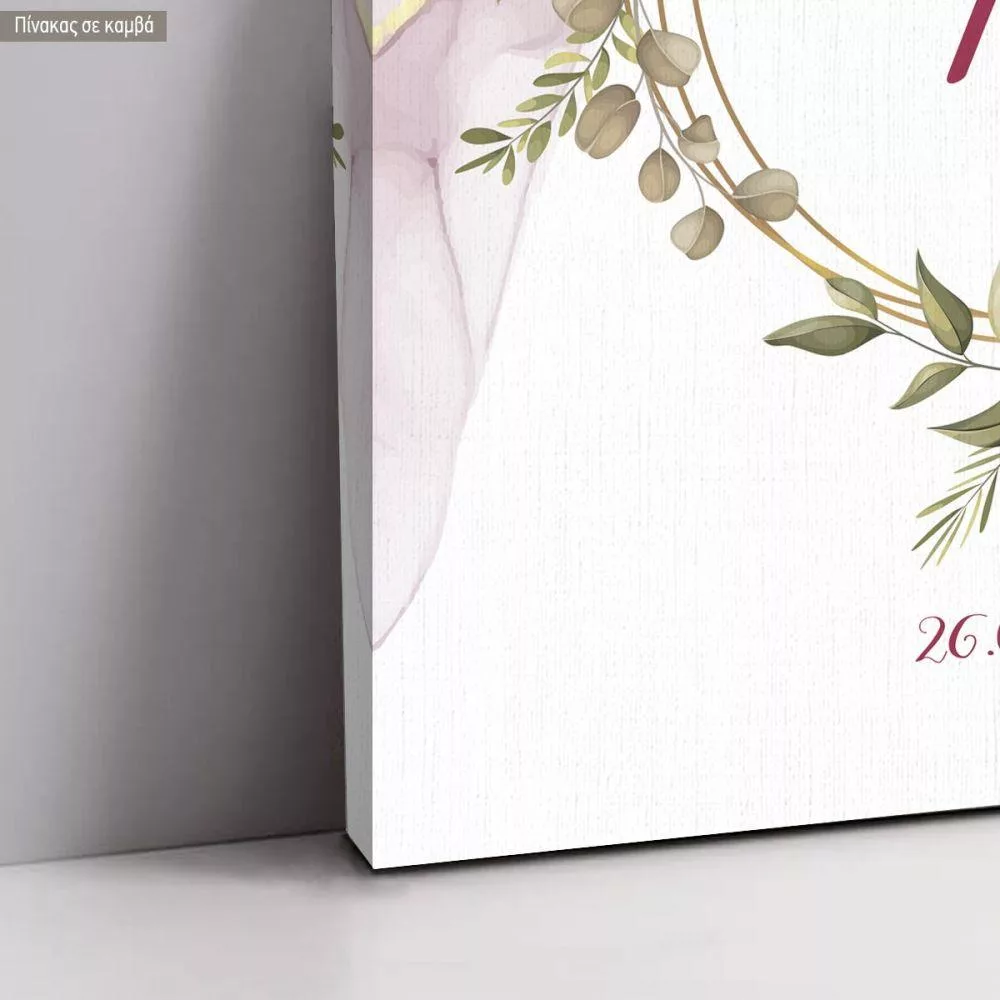 Canvas print welcome to my baptism, Golden circles and flowers ink colors