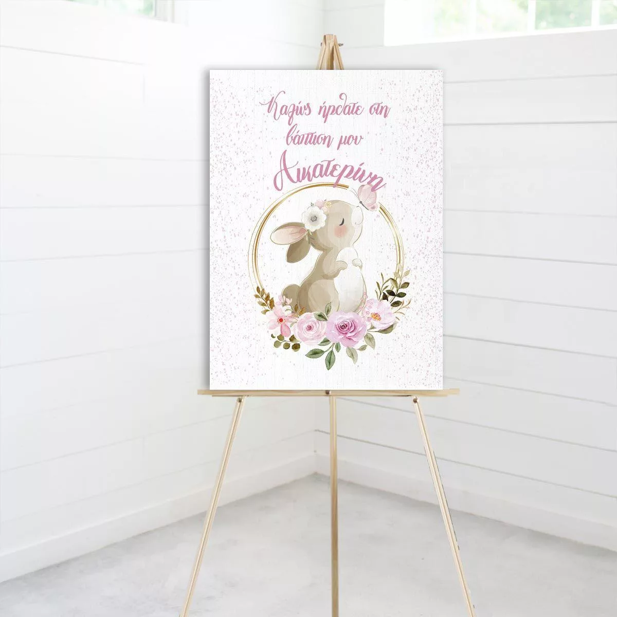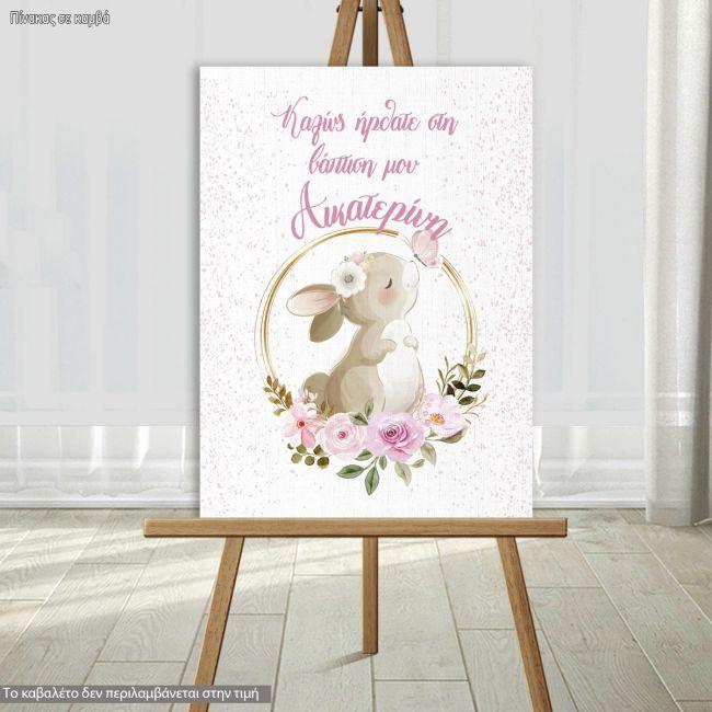 Canvas print welcome to my baptism, Golden circles and rabbit