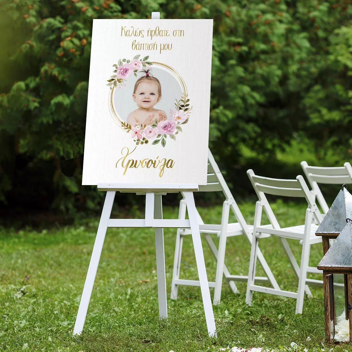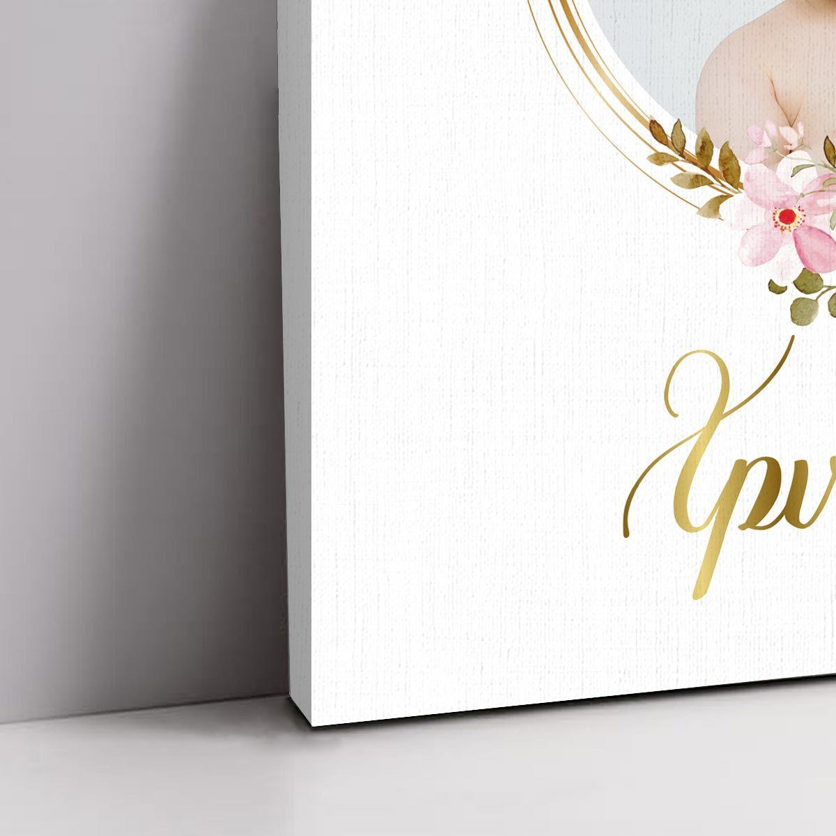 Canvas print welcome to my baptism, Golden circles, photo gold text
