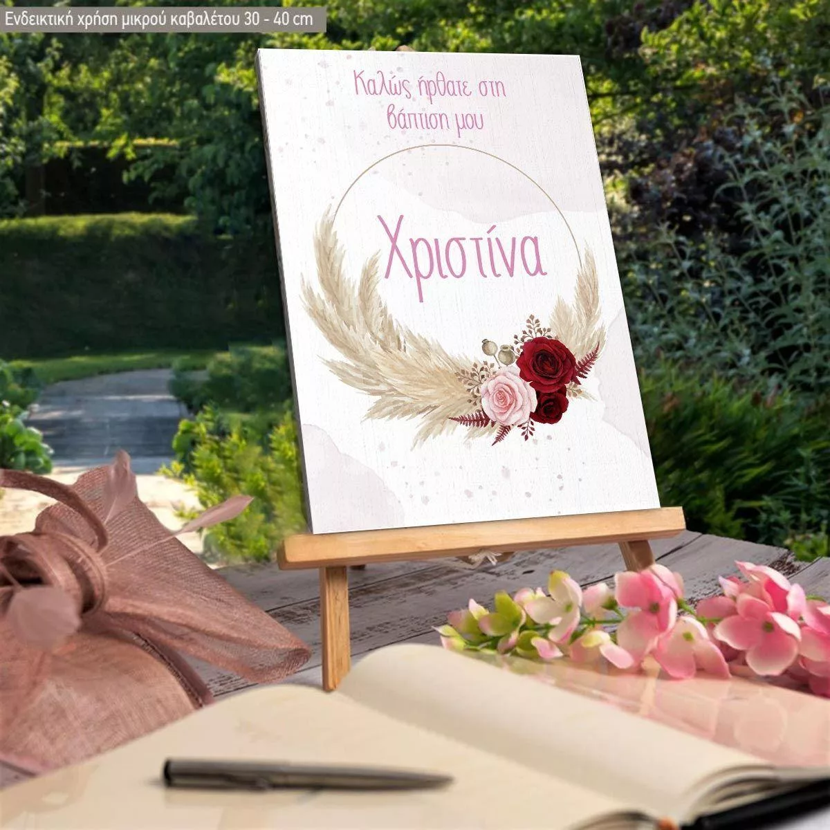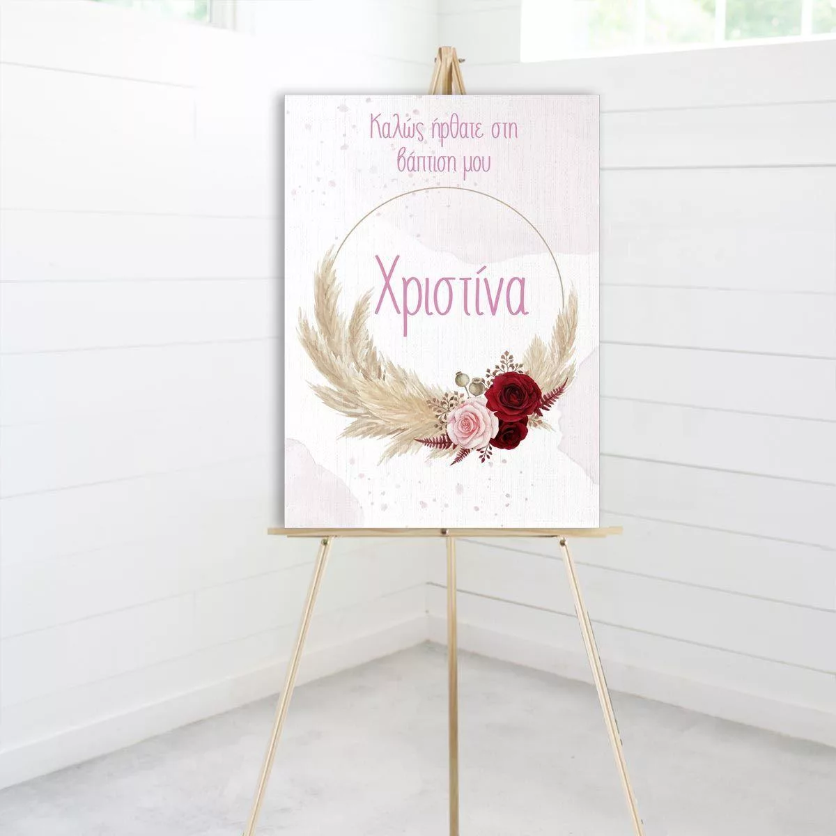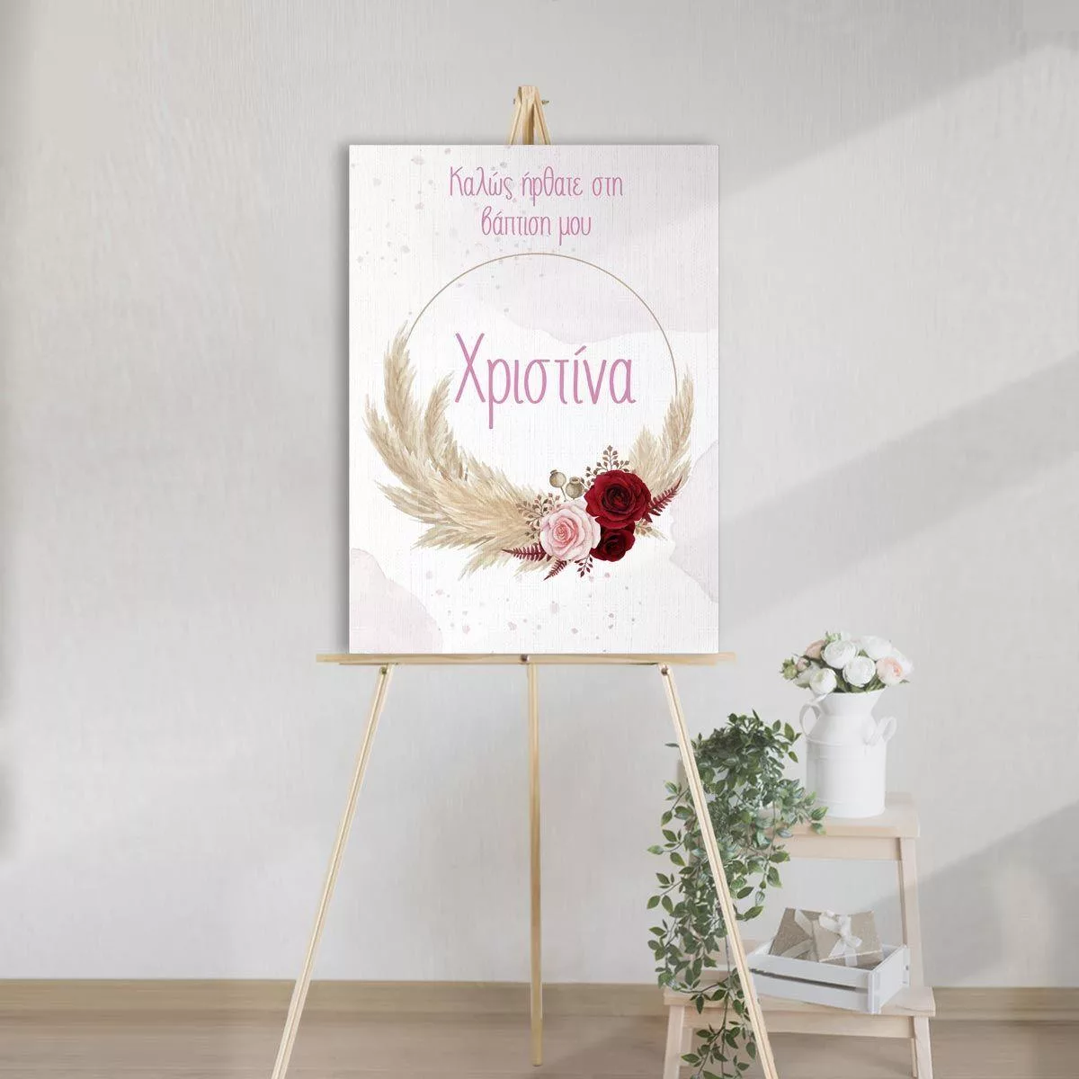Canvas print welcome to my baptism, pampas grass and flowers