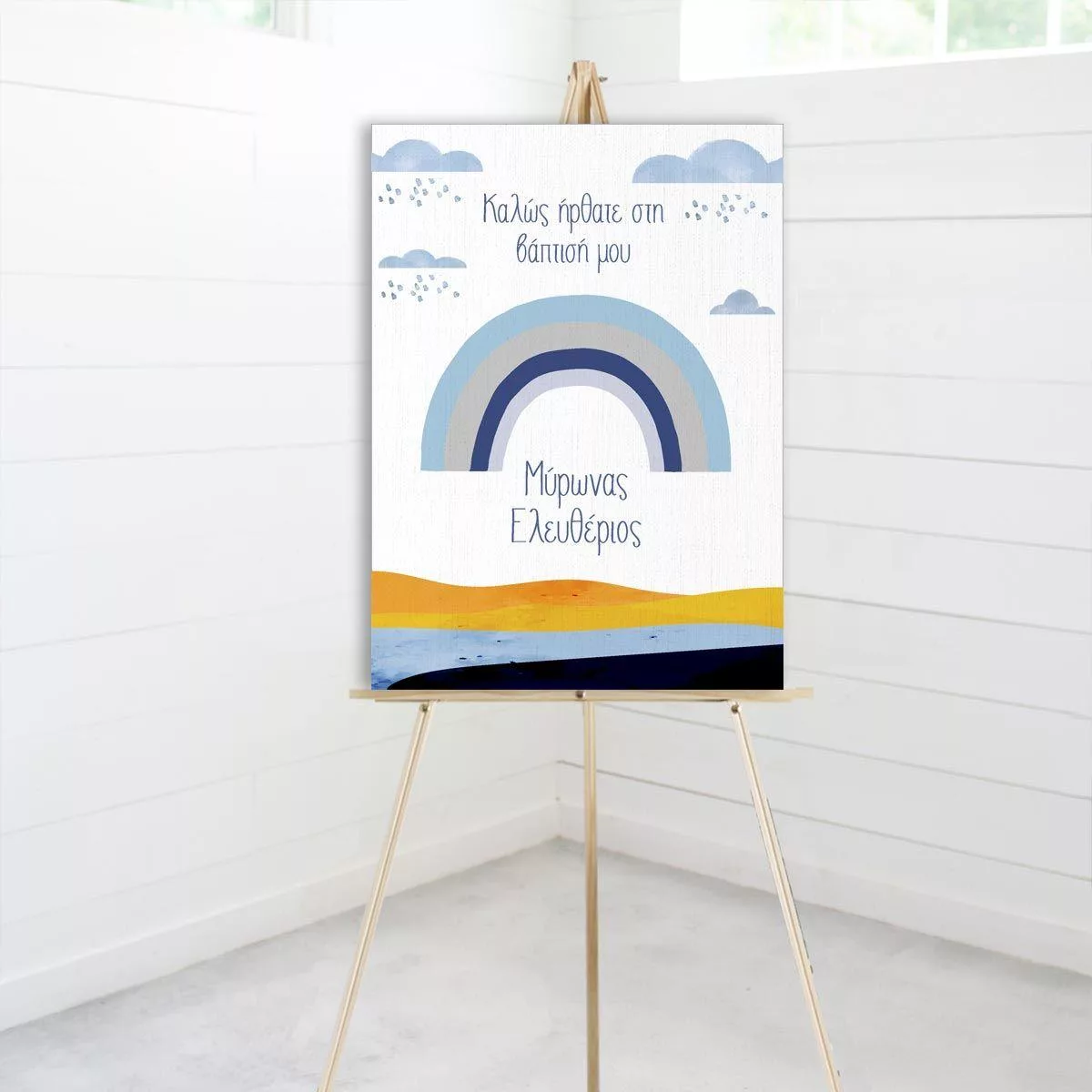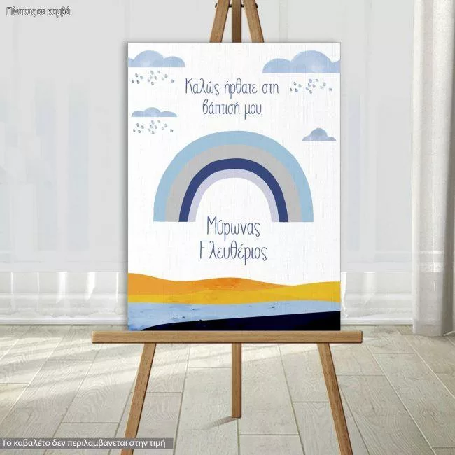 Canvas print welcome to my baptism, Rainbow kids blue