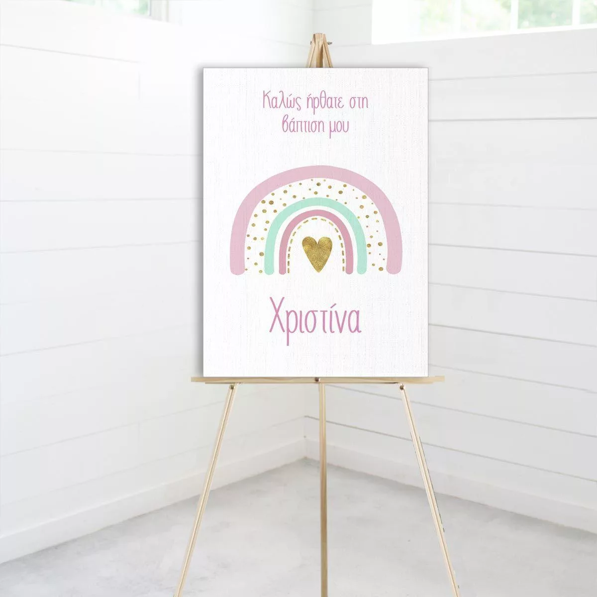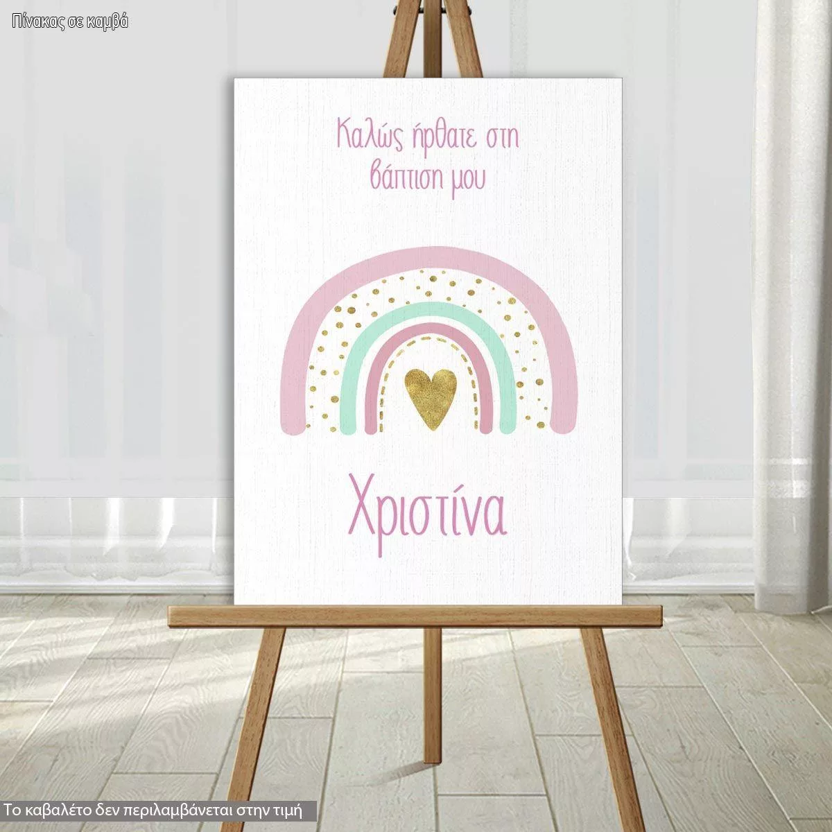 Canvas print welcome to my baptism, Rainbow nordic gold hearts