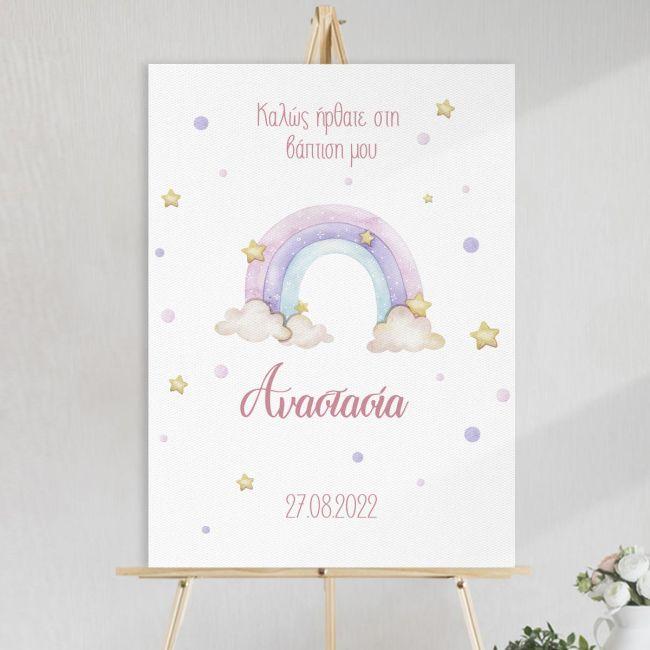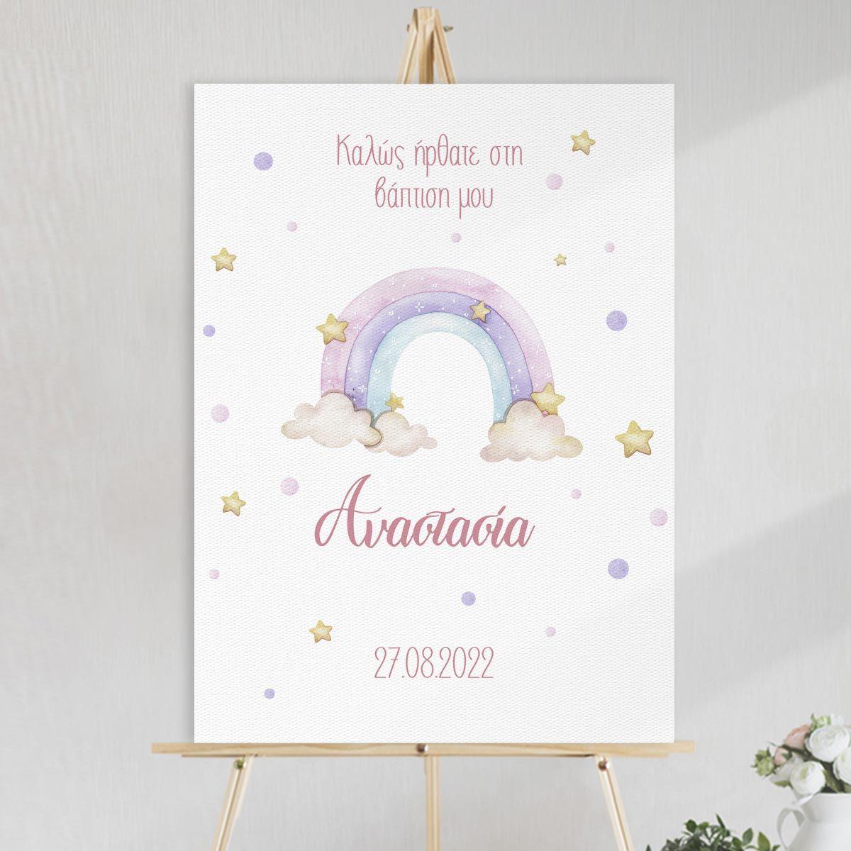 Canvas print welcome to my baptism , Rainbow painted with clouds, personalized