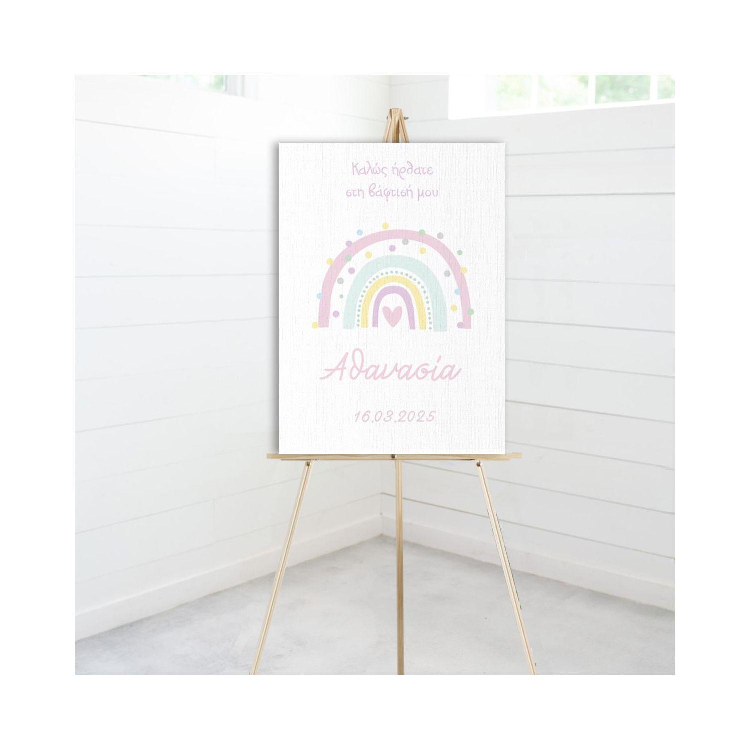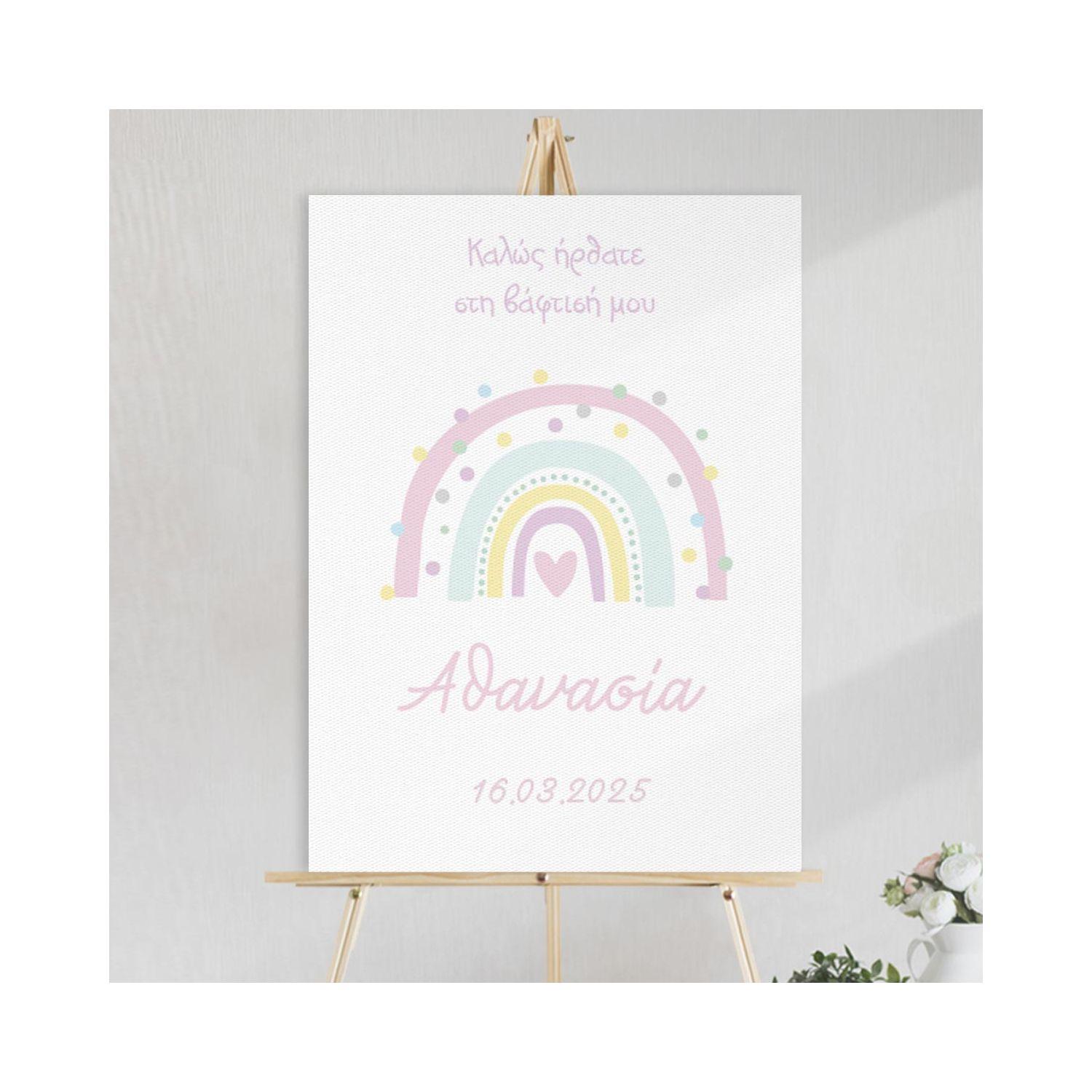 Canvas print welcome to my baptism, Rainbow pink pastel 2