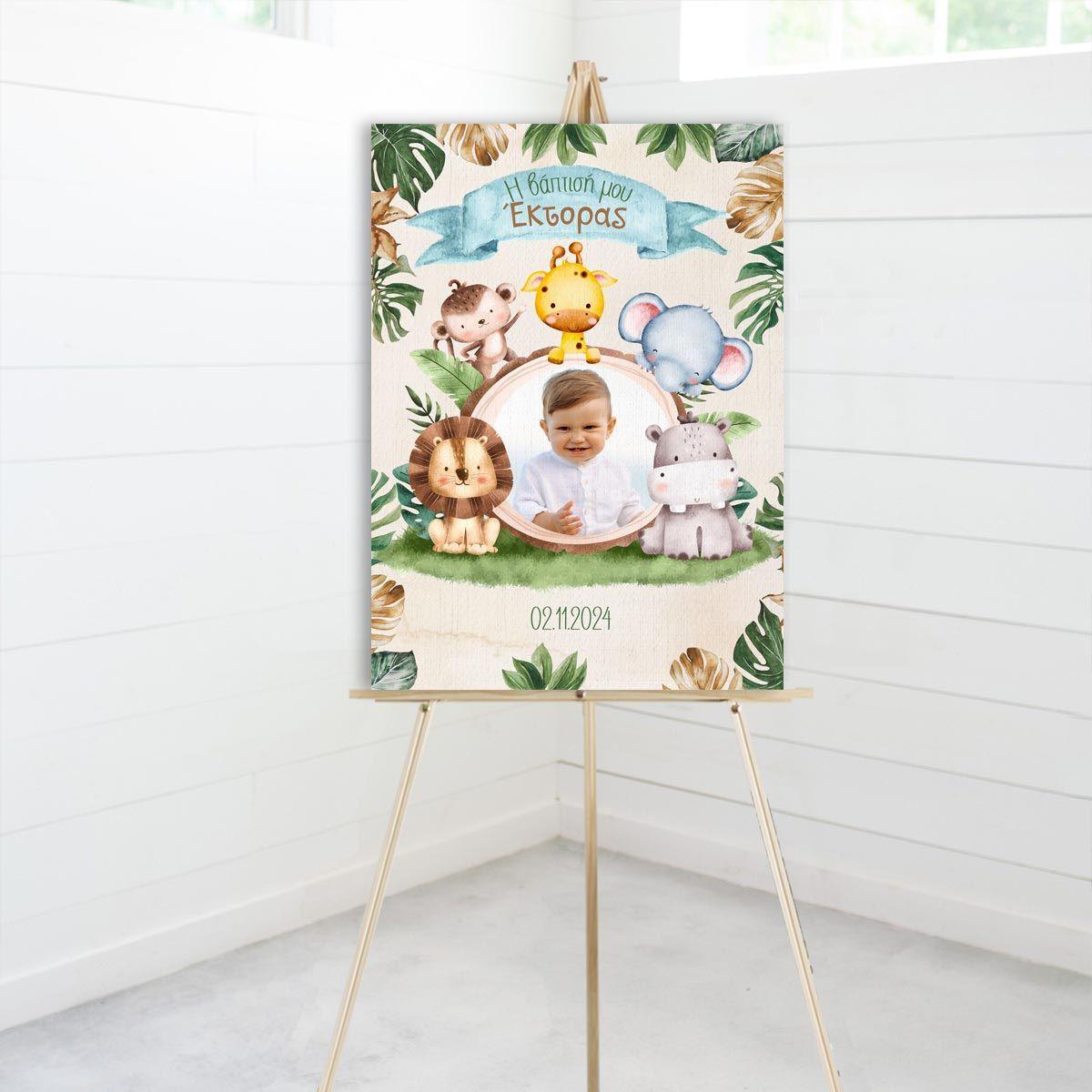 Canvas print welcome to my baptism, Safari animals with photo 2