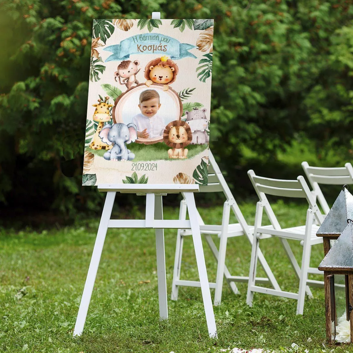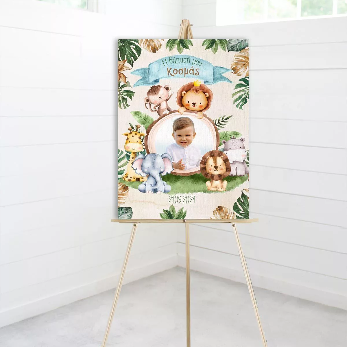 Canvas print welcome to my baptism, Safari animals with photo 3