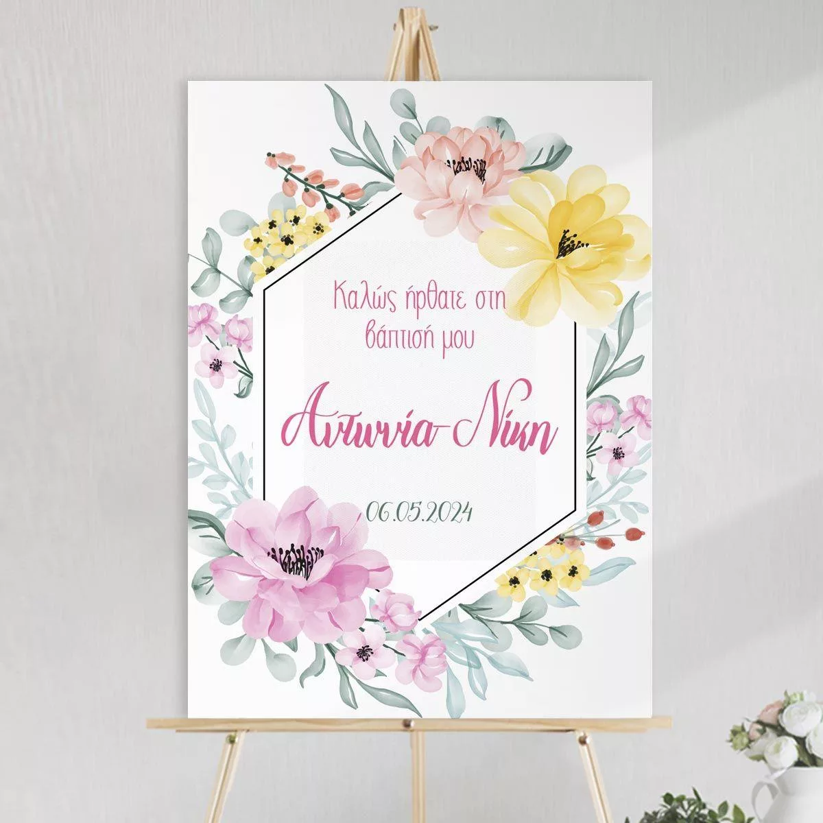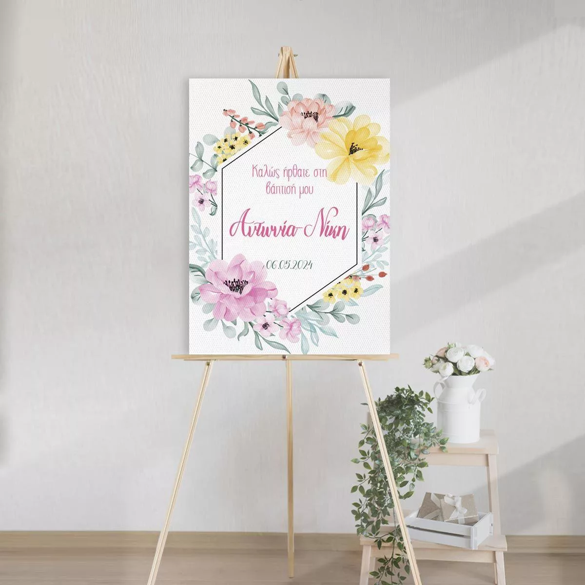 Canvas print welcome to my baptism, spring flowers