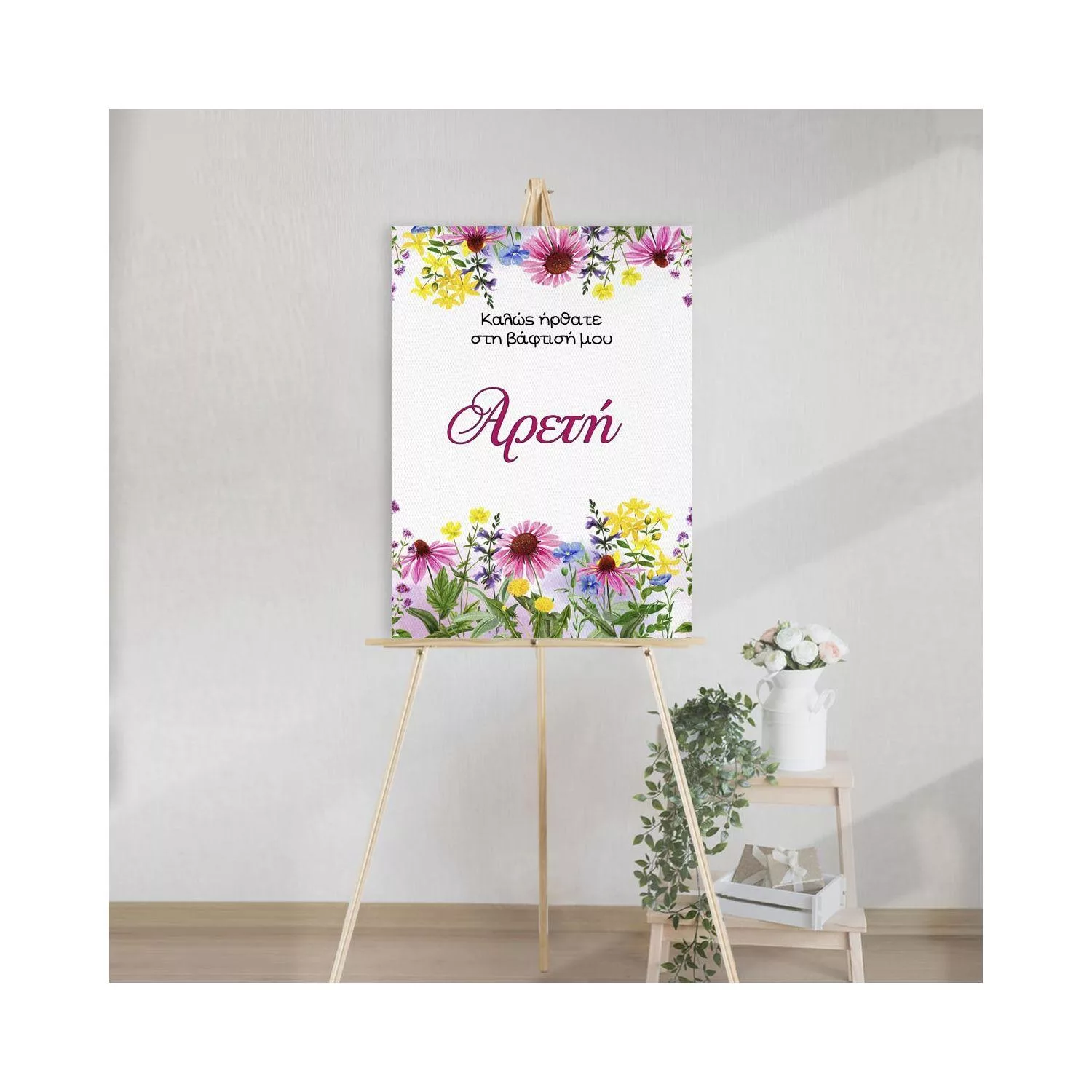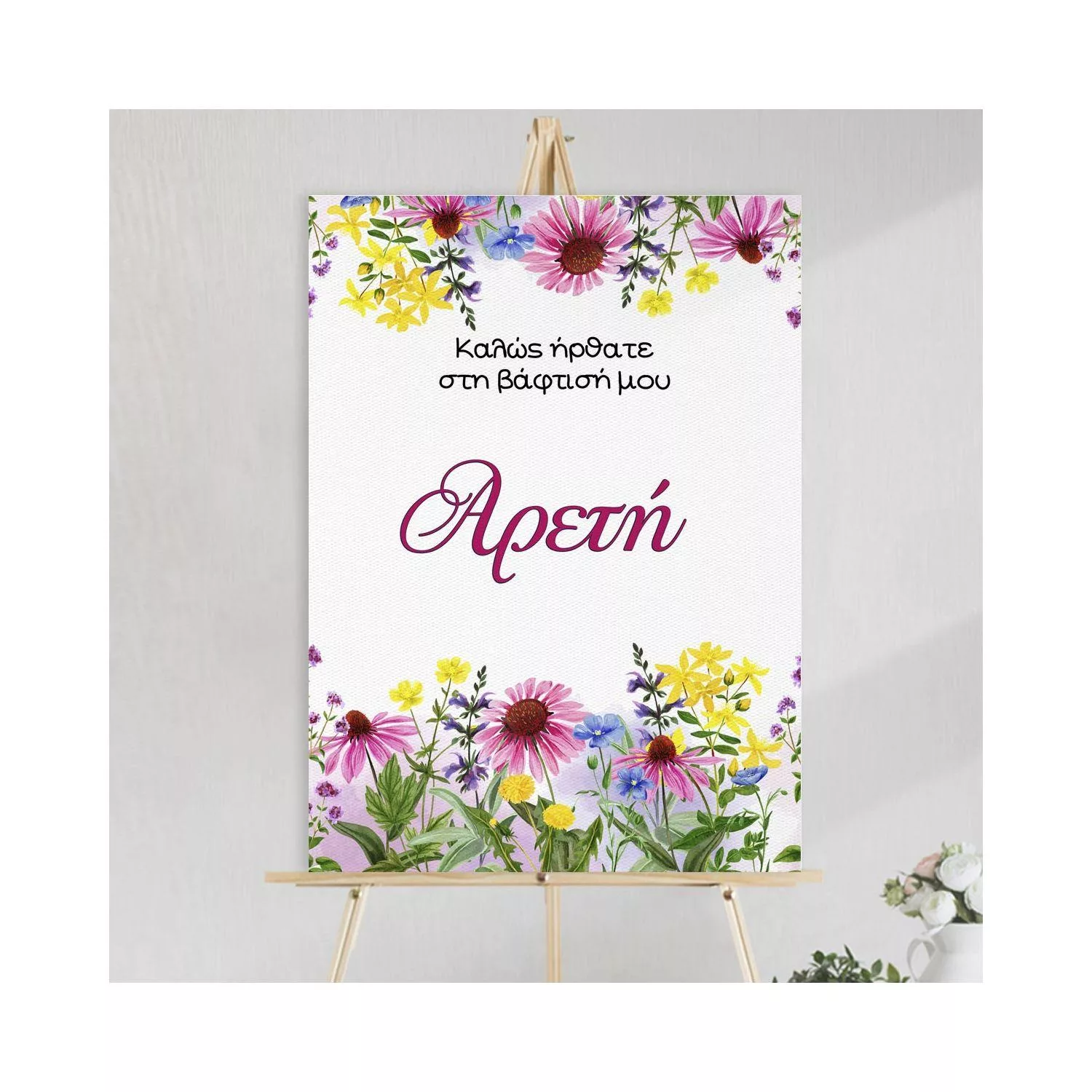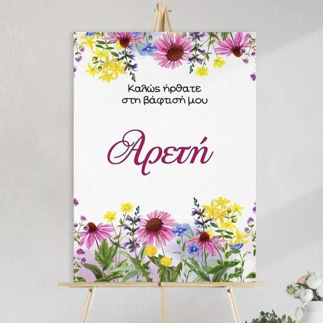 Canvas print welcome to my baptism, summer watercolor flowers