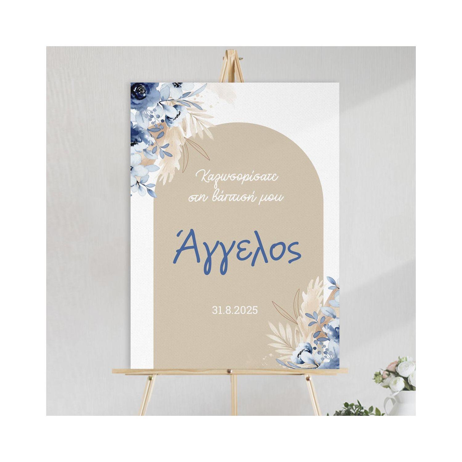 Canvas welcome to my baptism, Arc floral Blue minimal