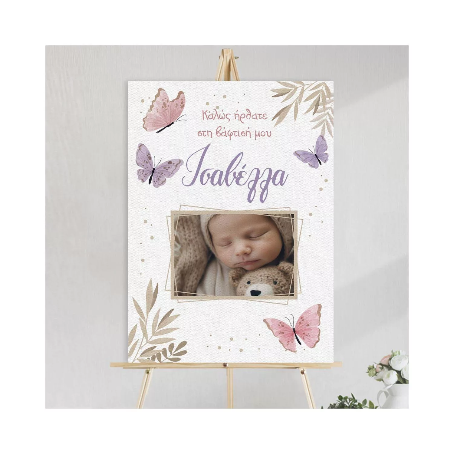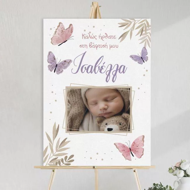 Canvas welcome to my baptism, Butterflies floral with photo