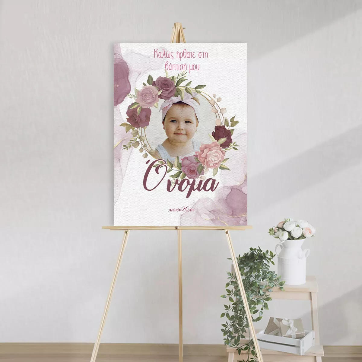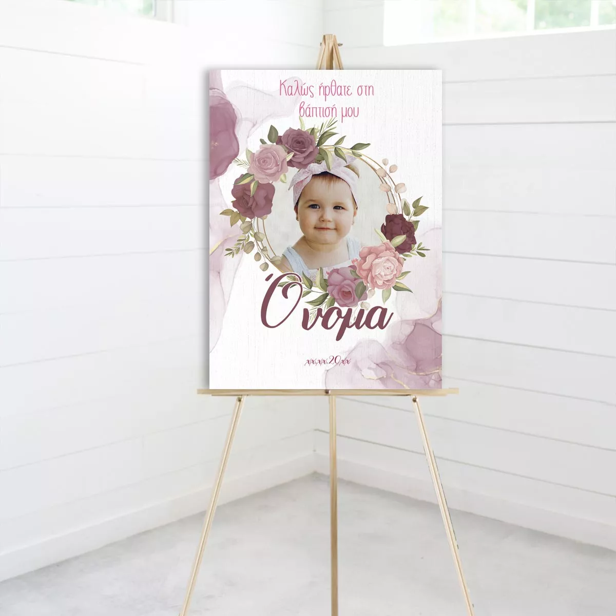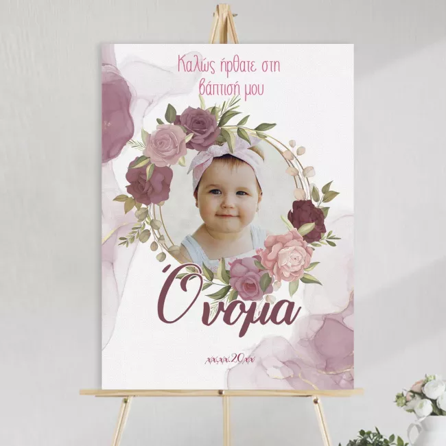 Add a tender and personal touch to your baptism reception. This elegant design embraces your child's sweetest photograph, creating a focal point that will touch every guest's heart.