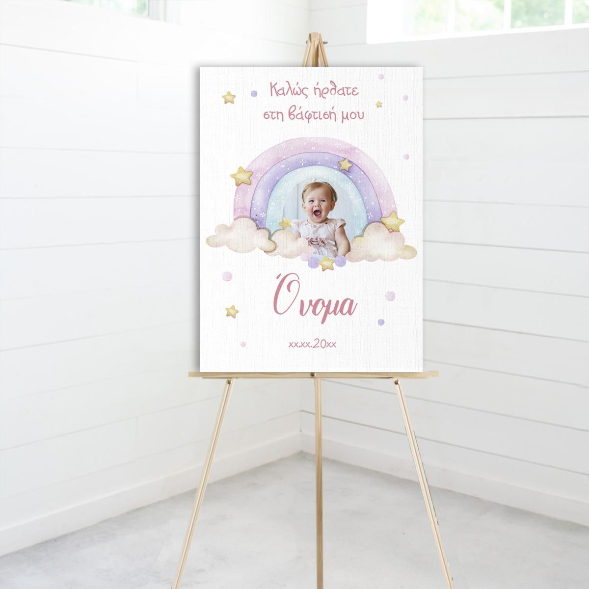 Canvas print welcome to my baptism , Rainbow painted with clouds and photo