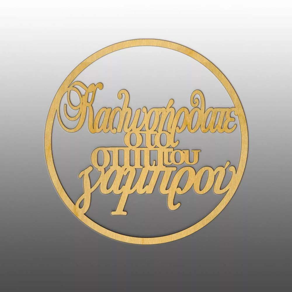 Wooden wreath Kalosorisate sto spiti tou gamprou