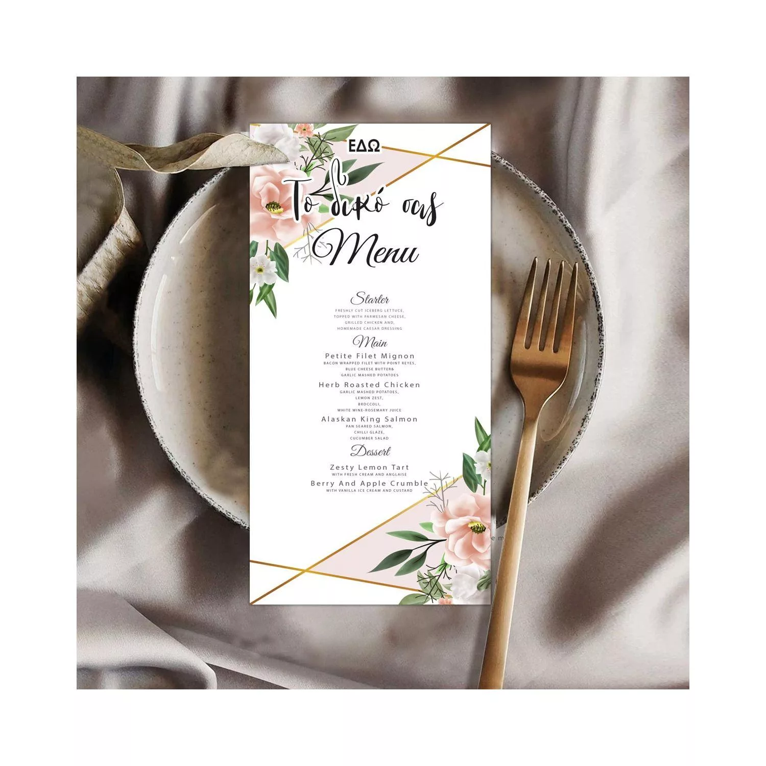 Wedding menu, personalized