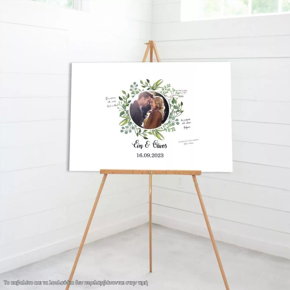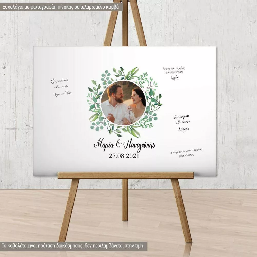 Canvas print Wedding welcome Wishes board Geometric frame, floral blue with photo